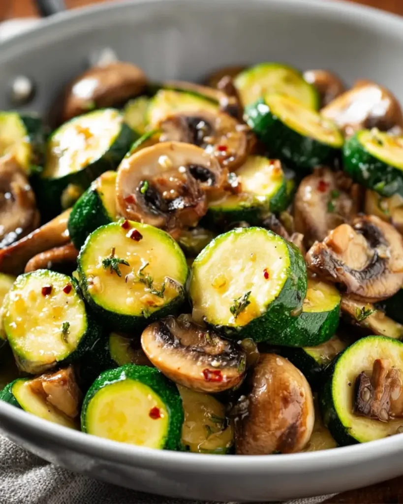 A simple and delicious recipe for sautéed zucchini and mushrooms in garlic butter.