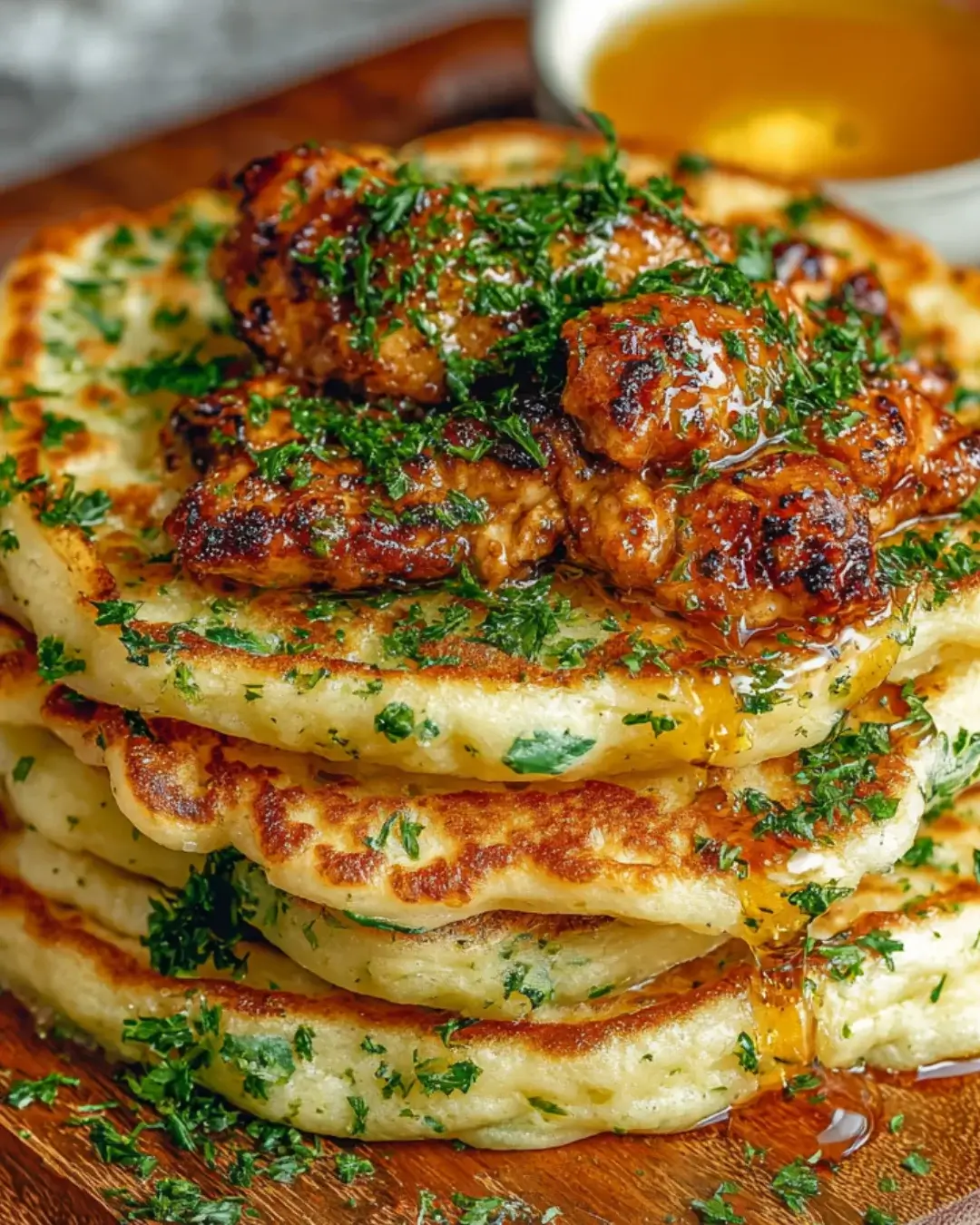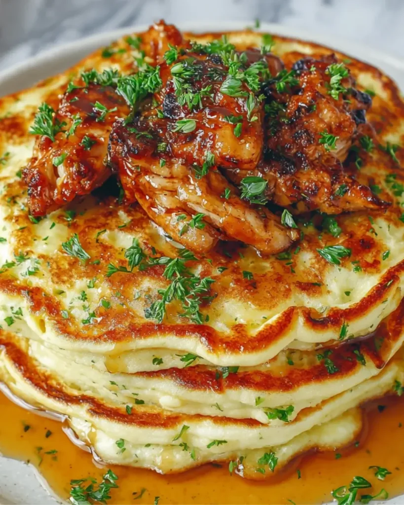 A delicious and quick recipe for savoury pancakes topped with honey butter chicken, perfect for a satisfying meal.