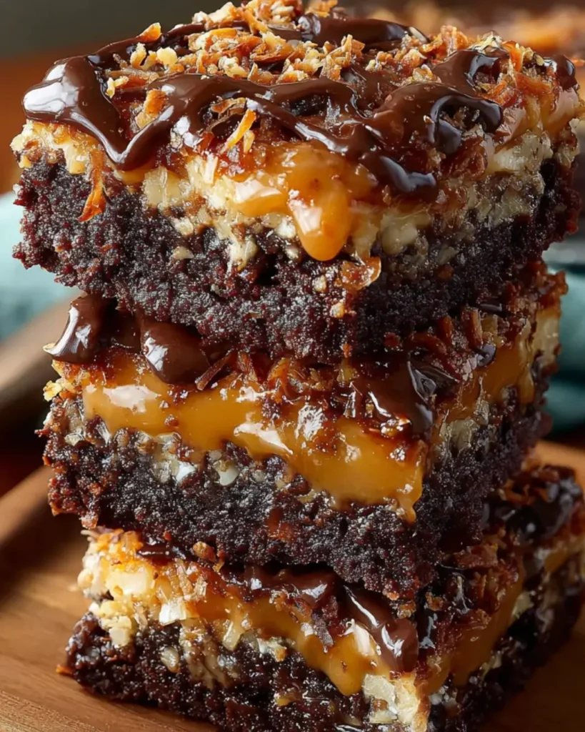 Each bite is a celebration of rich chocolate, chewy coconut, and luscious caramel, making it impossible not to smile.