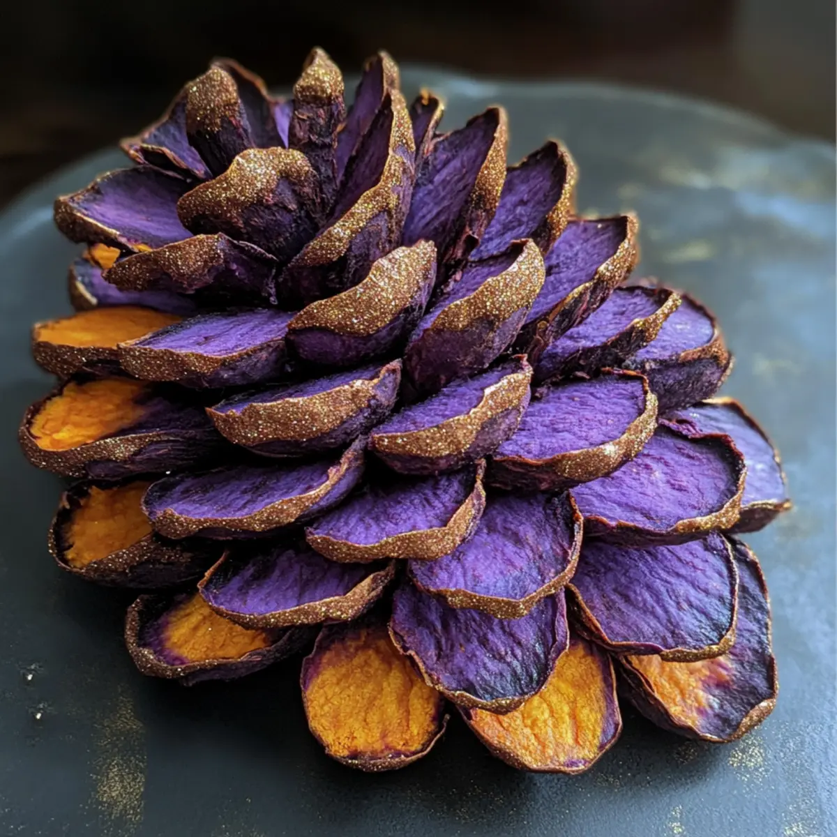 Fun and Festive: These Edible Pine Cones bring a unique flair to your holiday celebrations, combining vibrant purple sweet potatoes with whimsical decorations that kids and adults will adore.