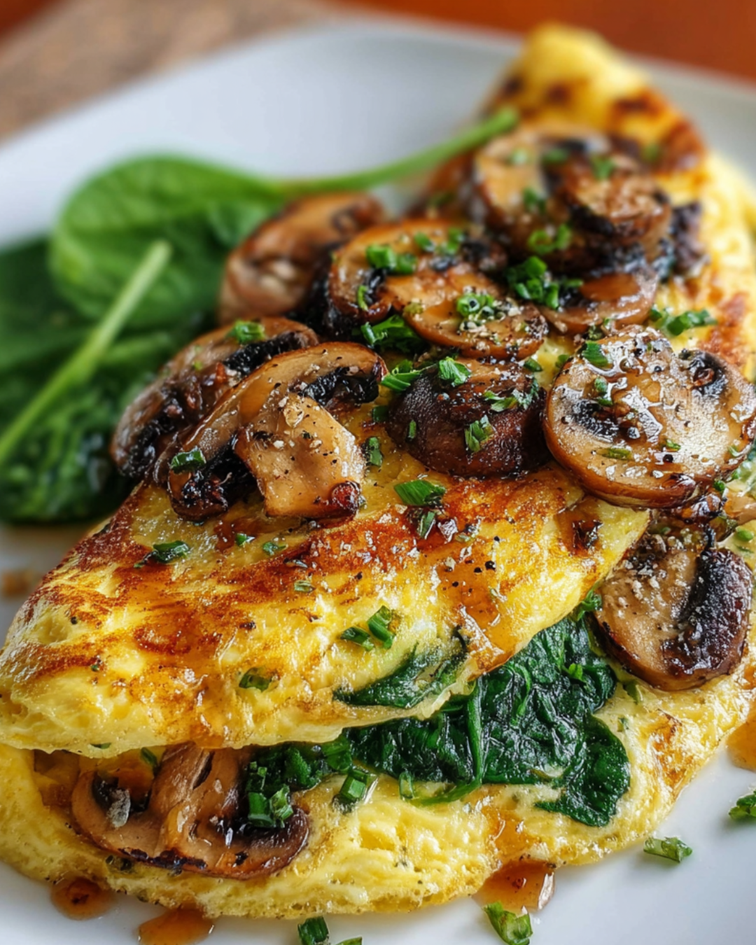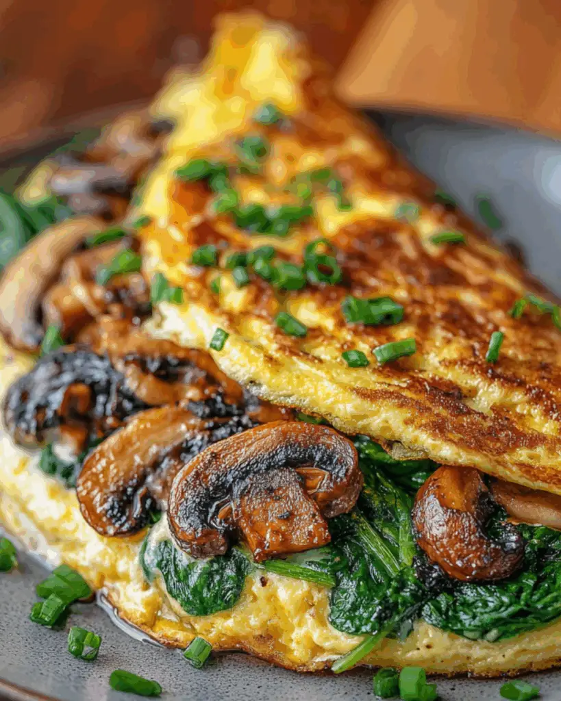 A quick and delicious egg omelet recipe featuring fresh spinach and mushrooms, perfect for a nutritious breakfast or brunch.