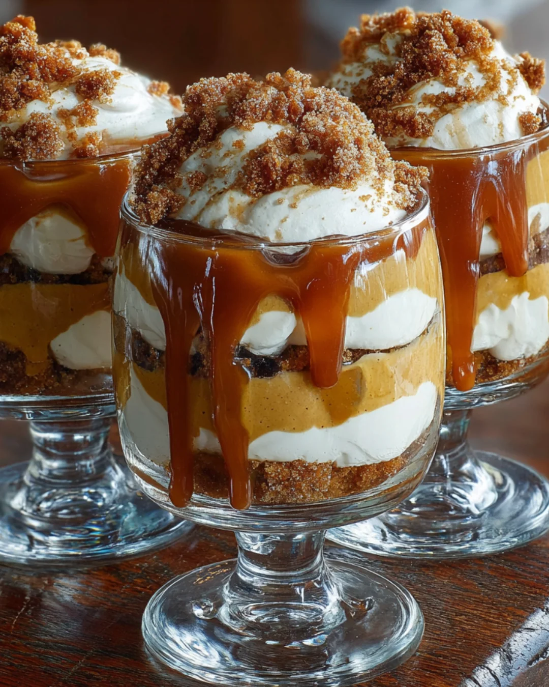 Each layer tells a story, from the spiced pumpkin to the crunchy ginger snaps, all drizzled with sweet caramel.