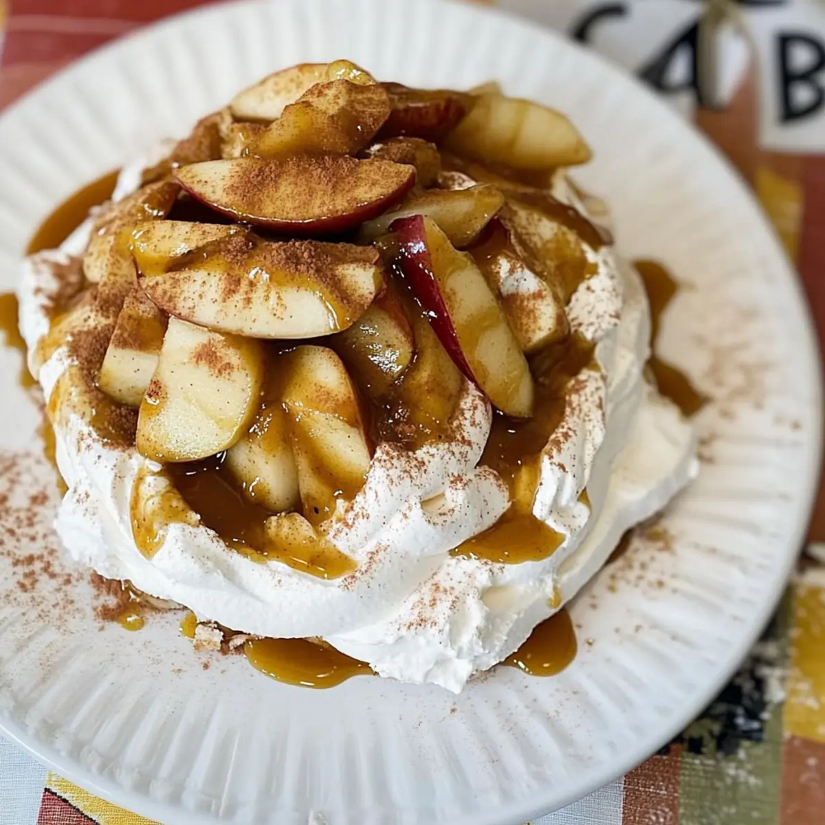 Fall Pavlova with Caramelized Apples and Cinnamon Whipped Cream Bliss