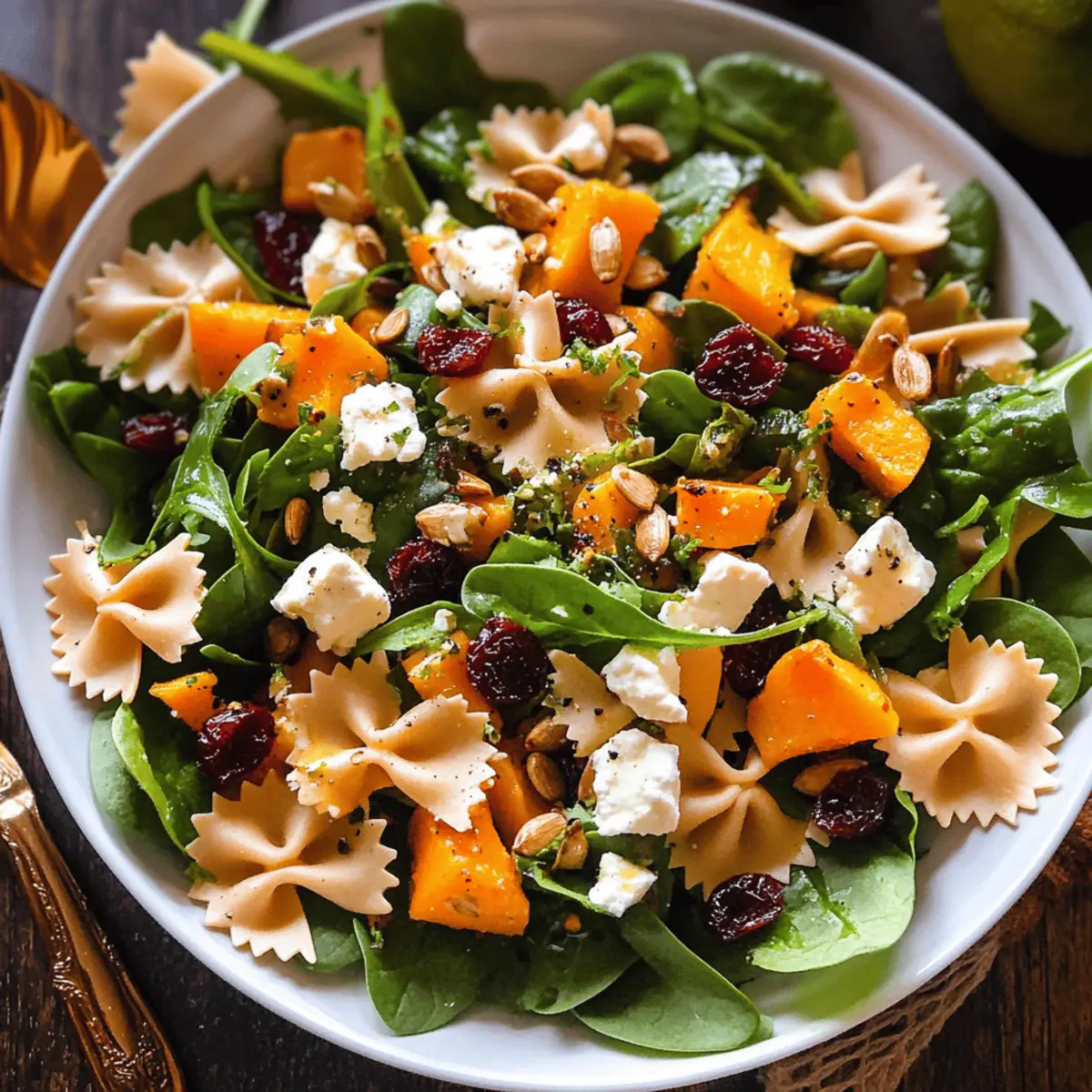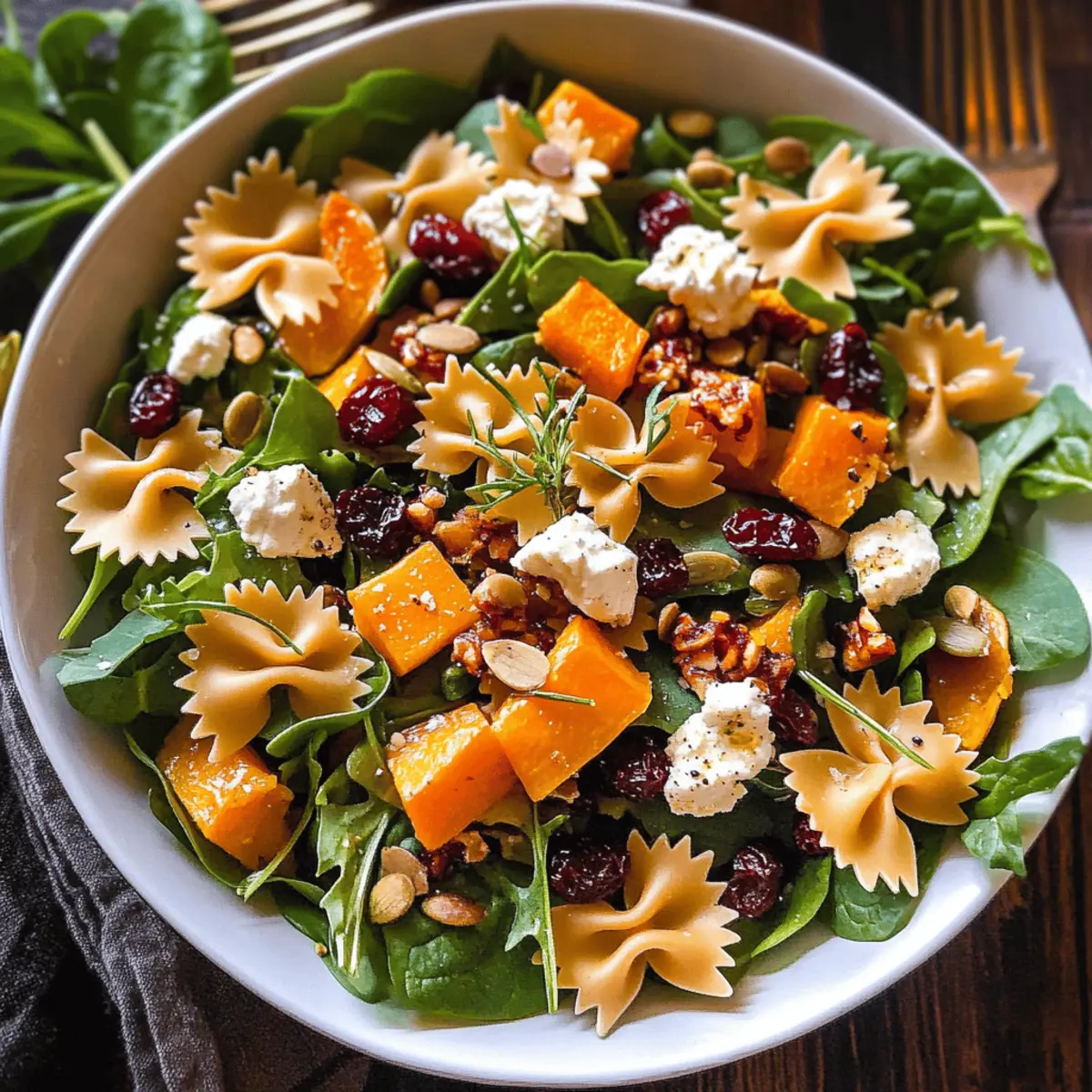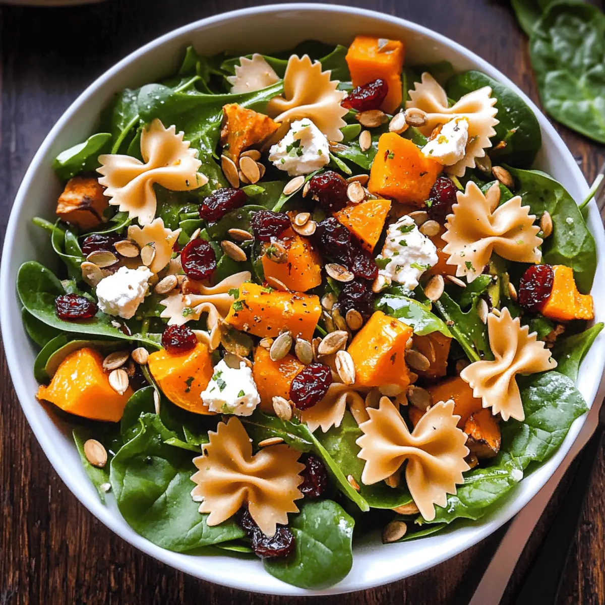 These Ultimate Fall Salad with Maple-Lime Dressing components are perfect for meal prep enthusiasts! You can roast the butternut squash and store it in an airtight container for up to 3 days. The maple-lime dressing can also be made ahead of time; just keep it refrigerated for up to 1 week. When ready to serve, cook the bow tie pasta and refrigerate it after cooling—this helps maintain its texture. Assemble the salad just before serving to keep the spinach and goat cheese fresh. By prepping these elements, you’ll save valuable time on busy weeknights while still delivering a delicious, vibrant dish that’s just as satisfying.