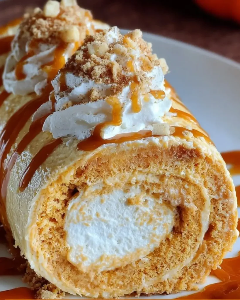 It’s a delightful twist on the classic pumpkin pie, combining creamy cheesecake with a spiced pumpkin filling, all wrapped in a soft cake roll.