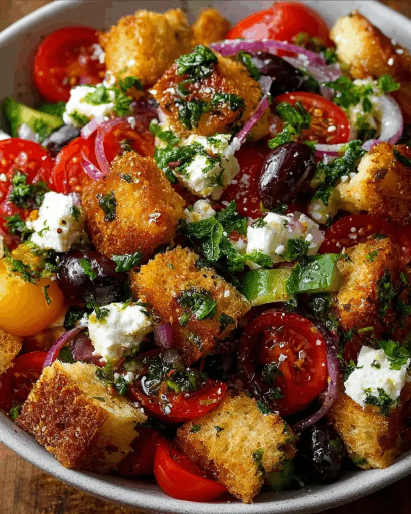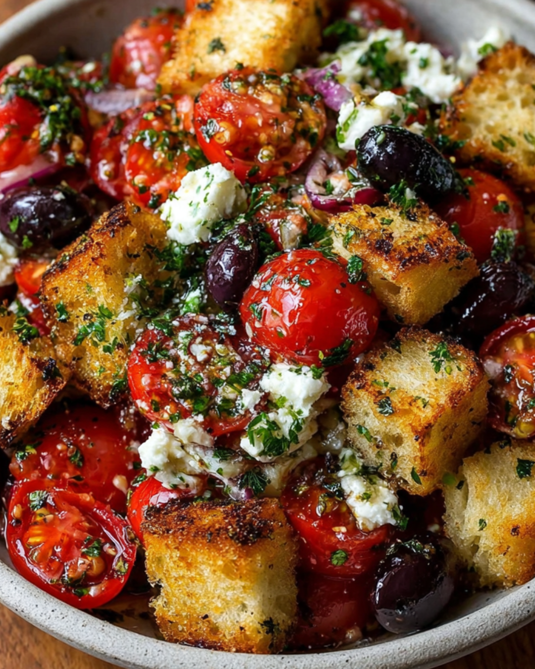 Creating this Feta, Tomato & Olive Salad with Garlicky Croutons is a breeze! Follow these simple steps, and you’ll have a delicious dish ready in no time. Let’s dive in!