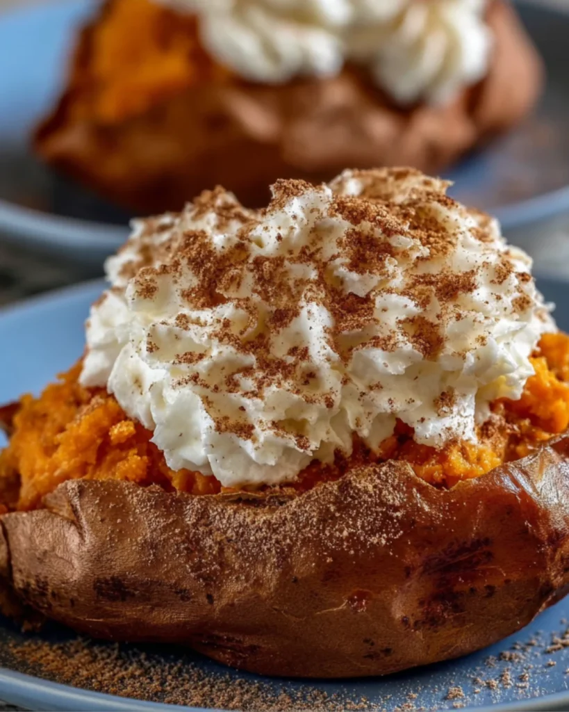 A delicious and fluffy baked sweet potato recipe enhanced with cinnamon and butter, perfect for a comforting side dish.