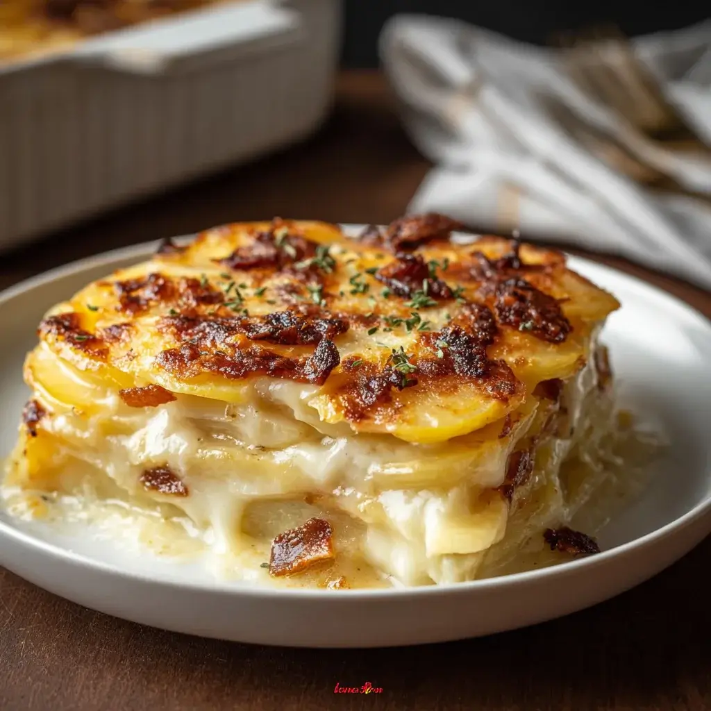 A delicious and creamy French Potato and Cheese Bake, perfect for a comforting meal.