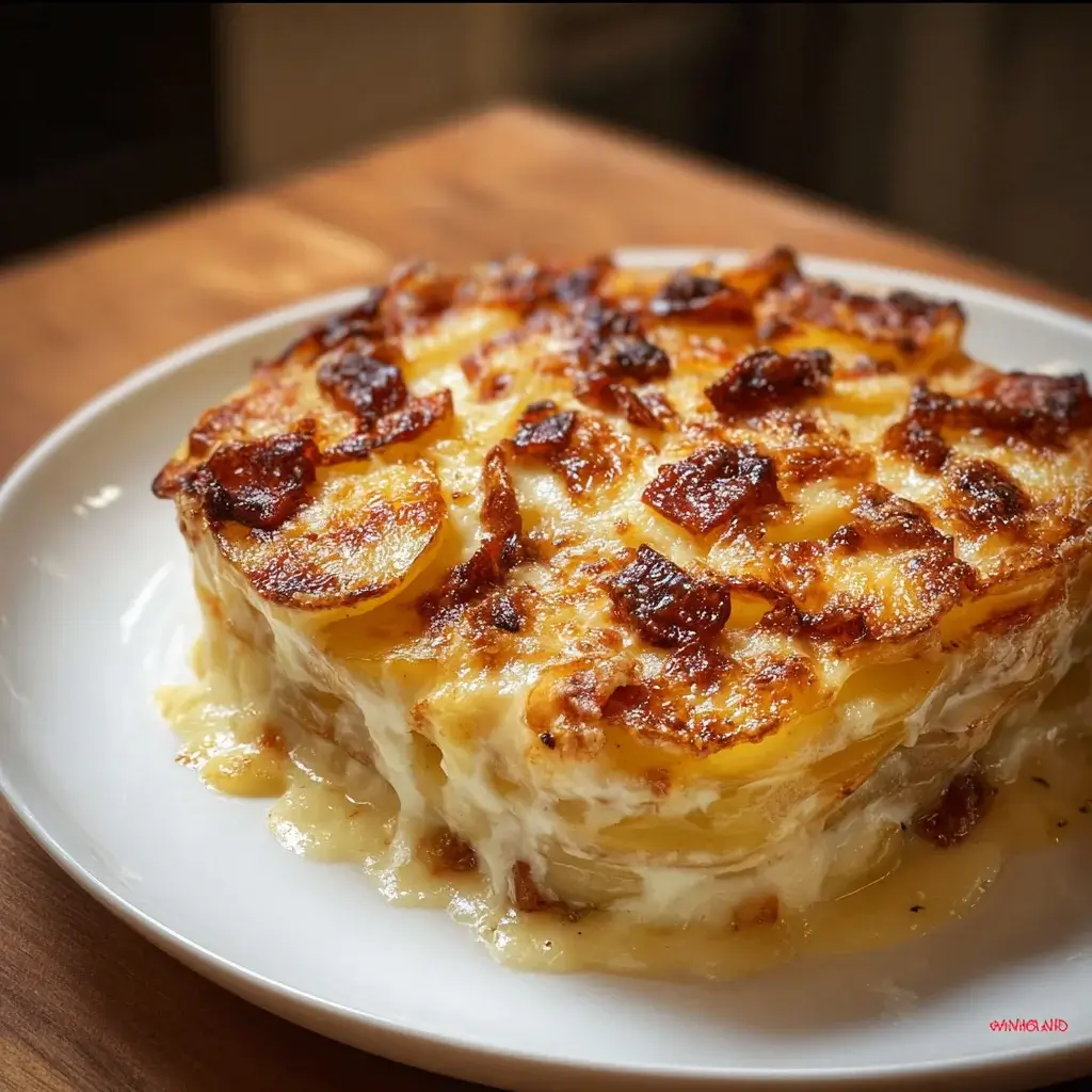 A delicious and creamy French Potato and Cheese Bake, perfect for a comforting meal.