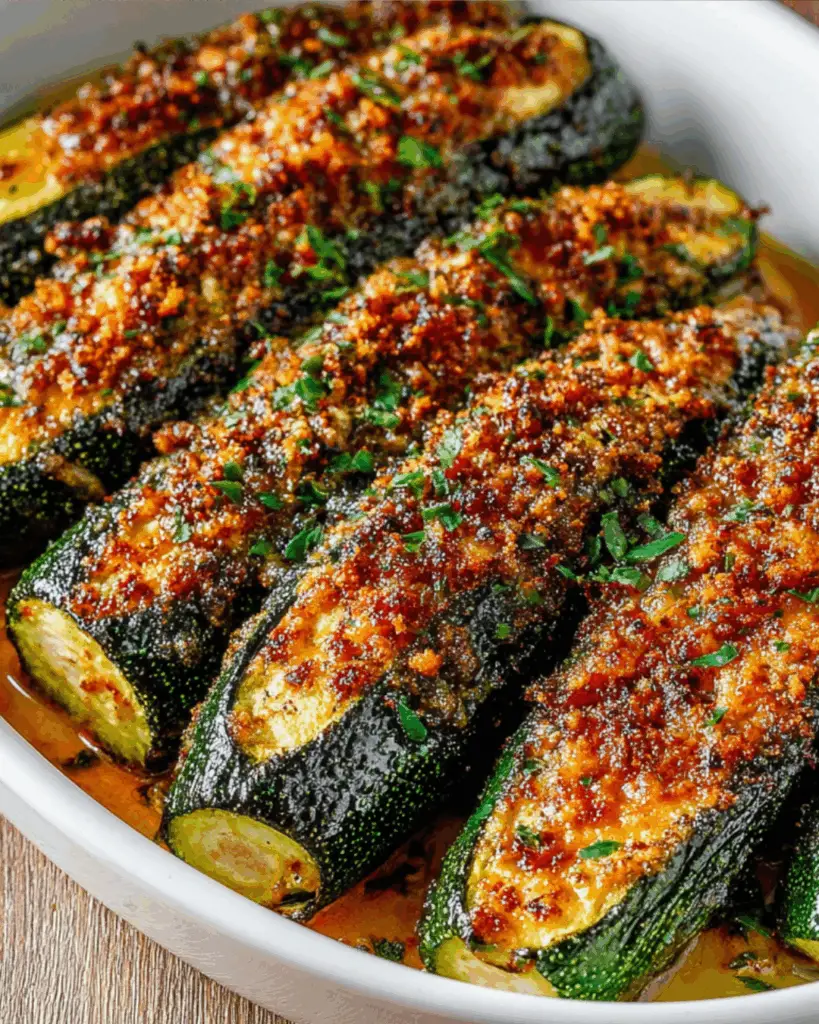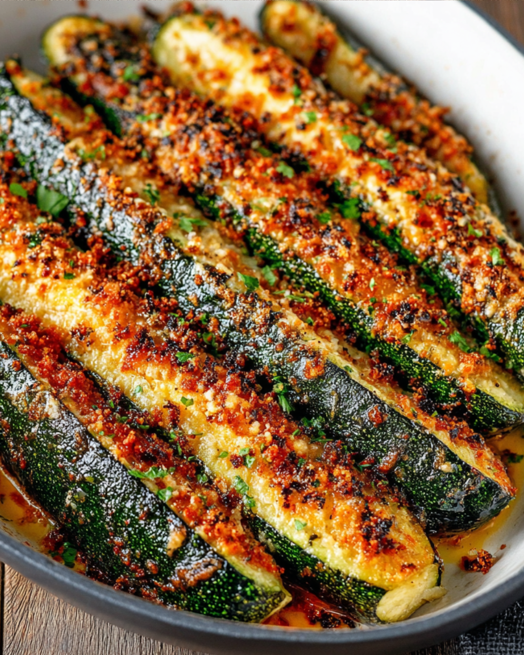 Once out of the oven, let the zucchini cool for a few minutes. If you like, garnish with chopped fresh parsley for a pop of color. Serve it warm, and watch it disappear from the table!