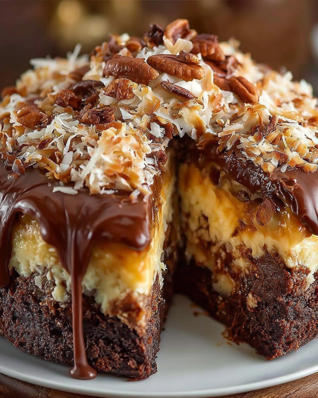 Introduction to German Chocolate Cheesecake Brownie Cake