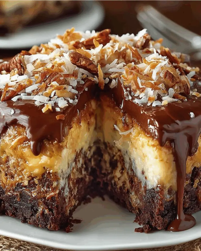 PrintGerman Chocolate Cheesecake Brownie Cake: Indulge Today!