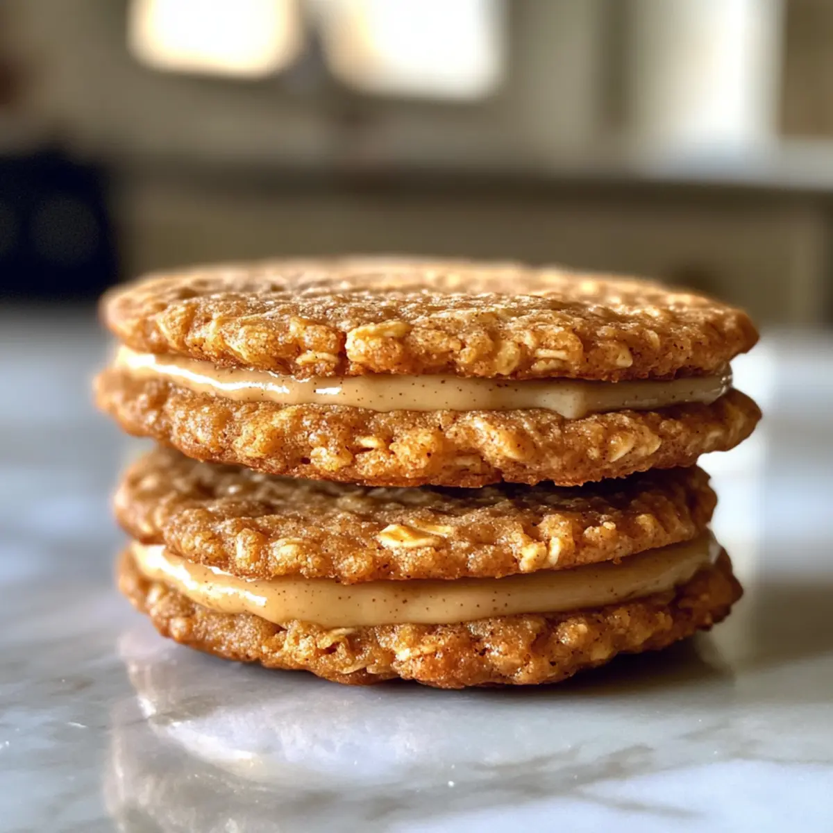 These Golden Oat Masala Chai Custard Sandwich Cookies are perfect for meal prep, saving you precious time during busy weeknights! You can prepare the cookie dough up to 24 hours in advance; simply scoop the dough into balls, place them on a baking sheet, cover tightly with plastic wrap, and refrigerate. The cookies can be baked straight from the fridge, just adding a couple of extra minutes to the baking time. Additionally, the custard filling can be made up to 3 days ahead; store it in an airtight container in the fridge to keep it fresh and prevent it from becoming too runny. When you’re ready to serve, simply pipe the custard between the cooled cookies, and you’ll have a delightful treat ready with minimal effort!