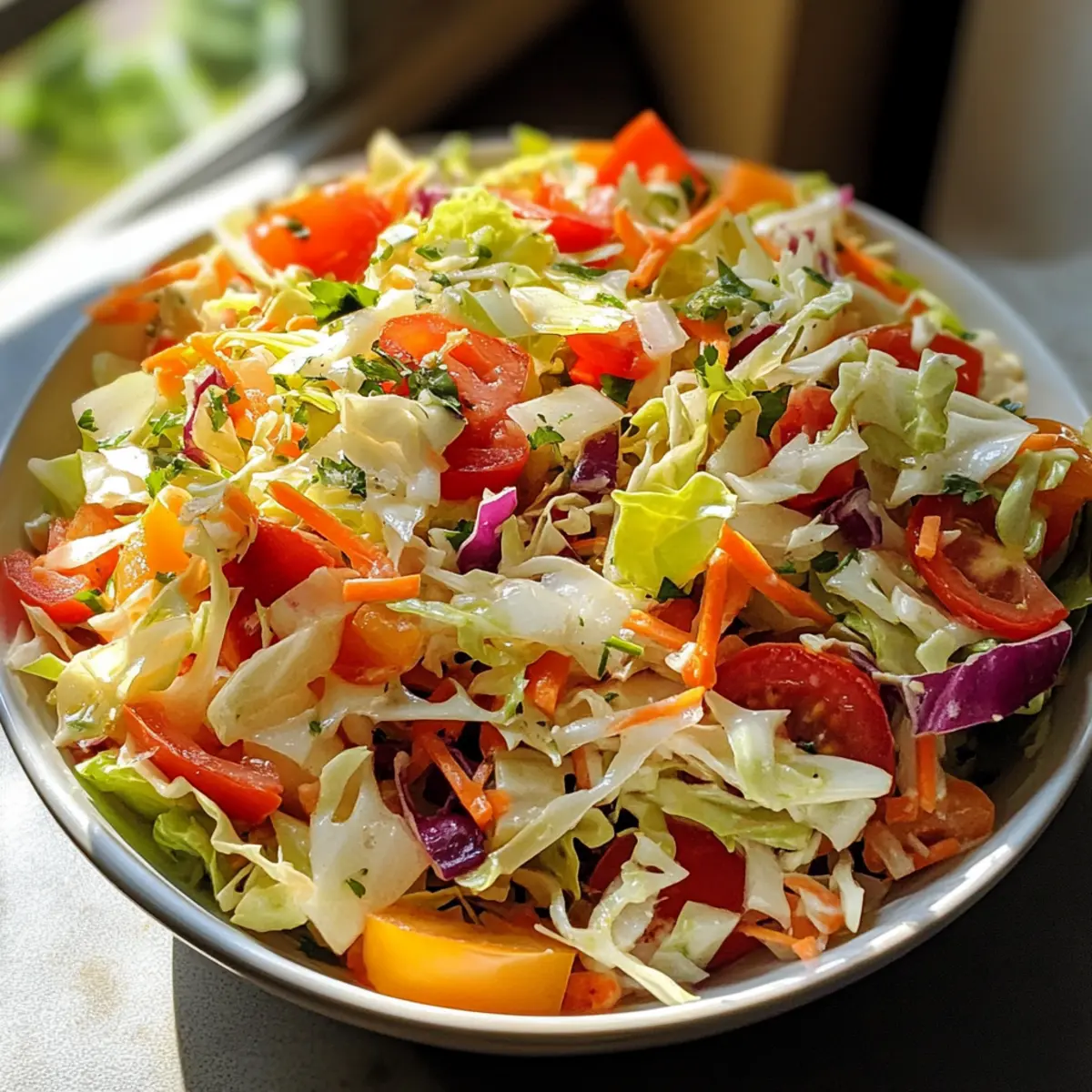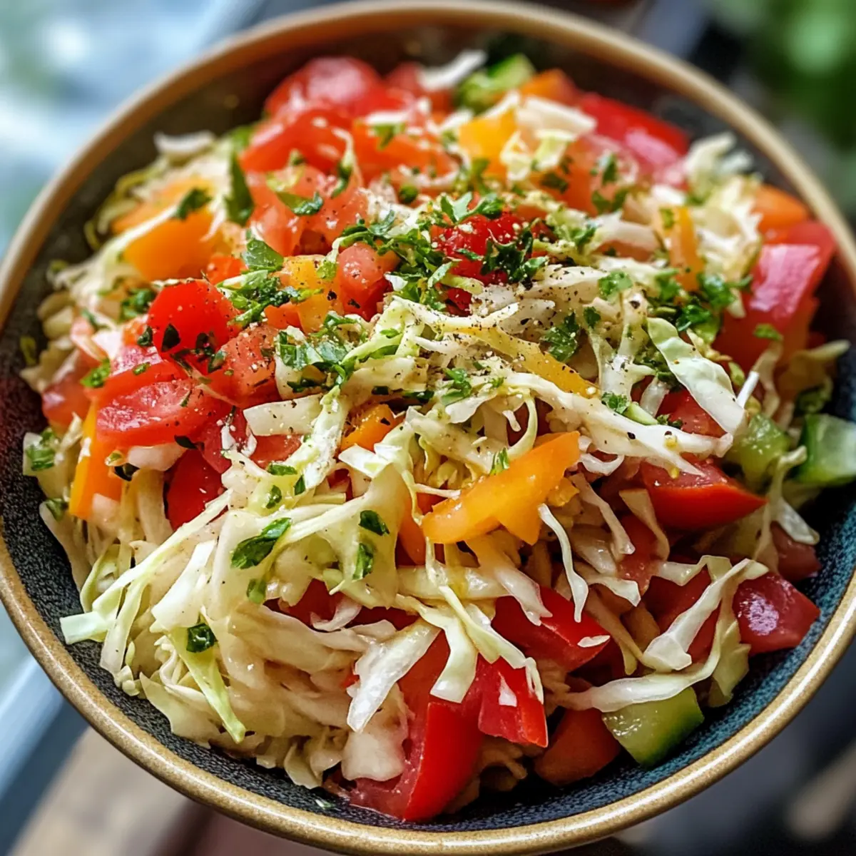 Vibrant, Crunchy Texture: The combination of finely shredded cabbage, fresh tomatoes, and crisp bell peppers gives you a satisfying crunch in every bite.