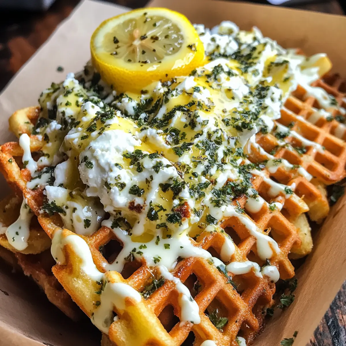 • Waffle Fries – The crispy base that holds all the flavors; ideal for catching the zesty lemon herb sauce.