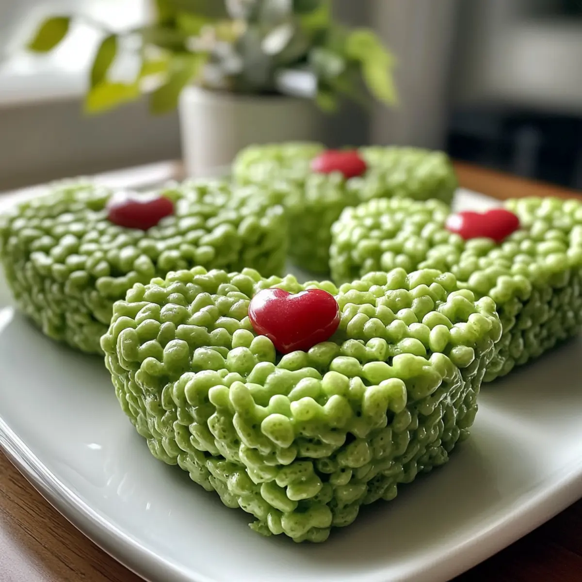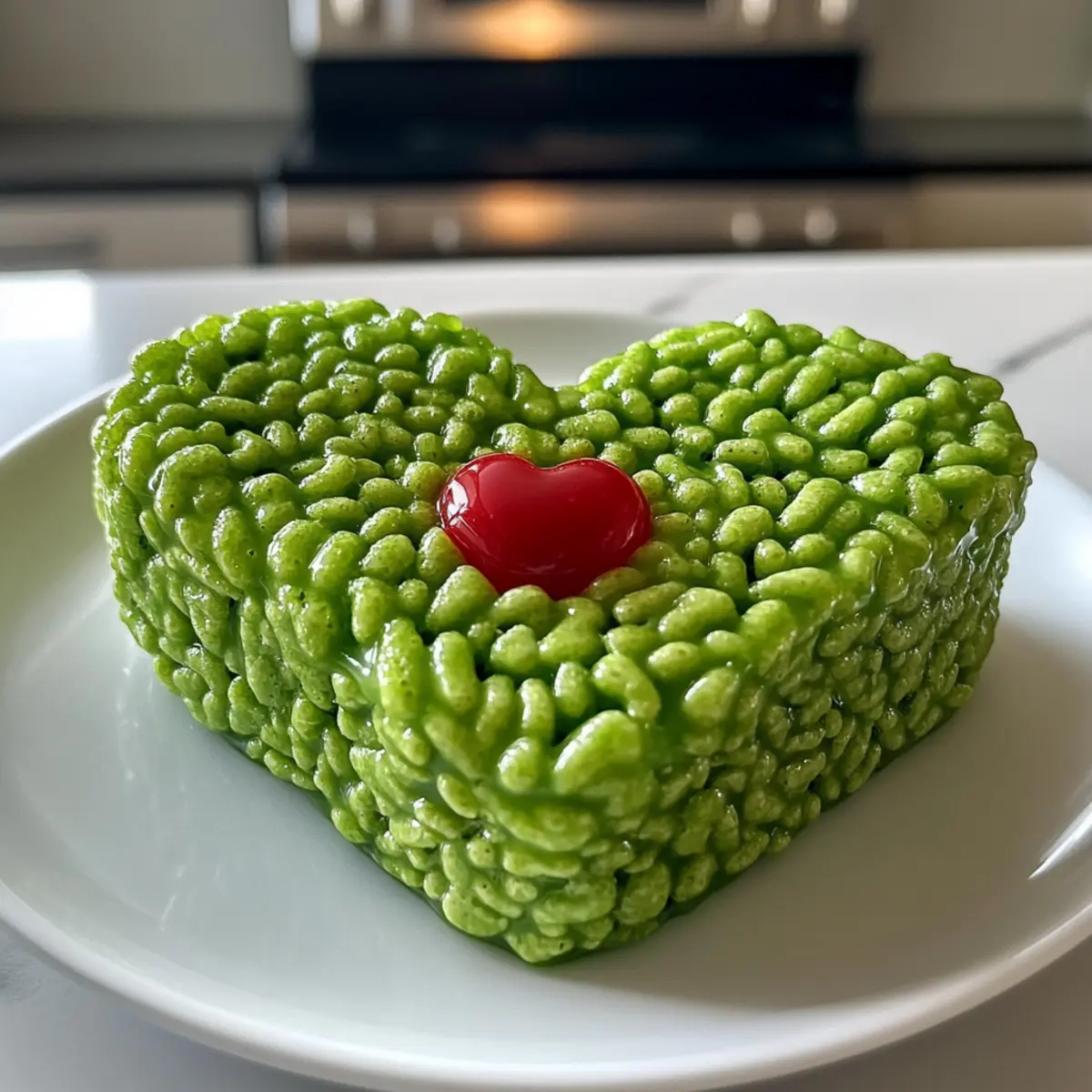 Grinch Heart Rice Krispies Treats for a Merry Holiday Delight