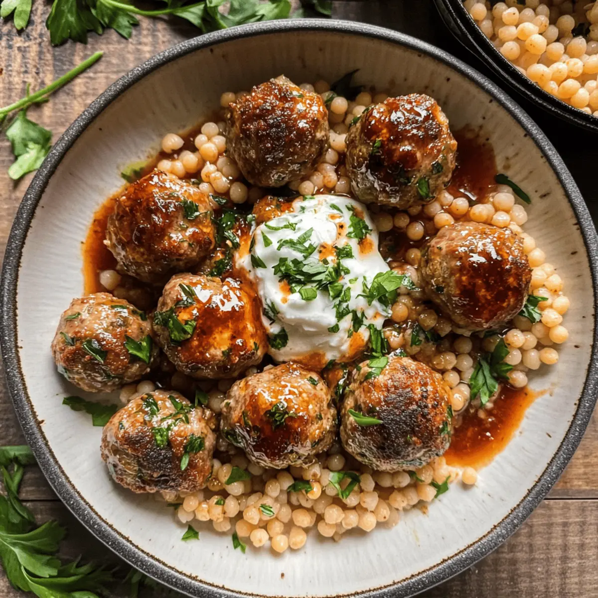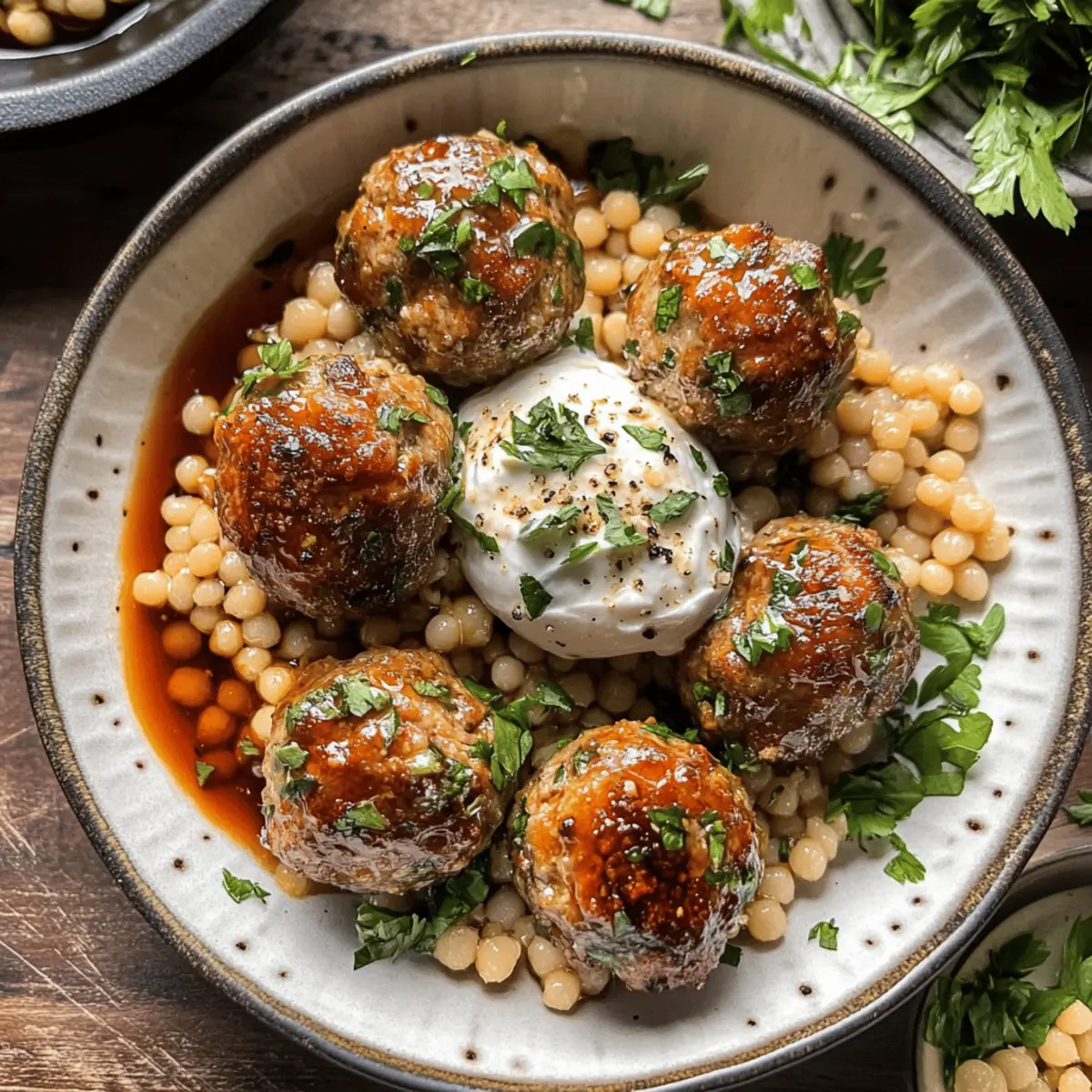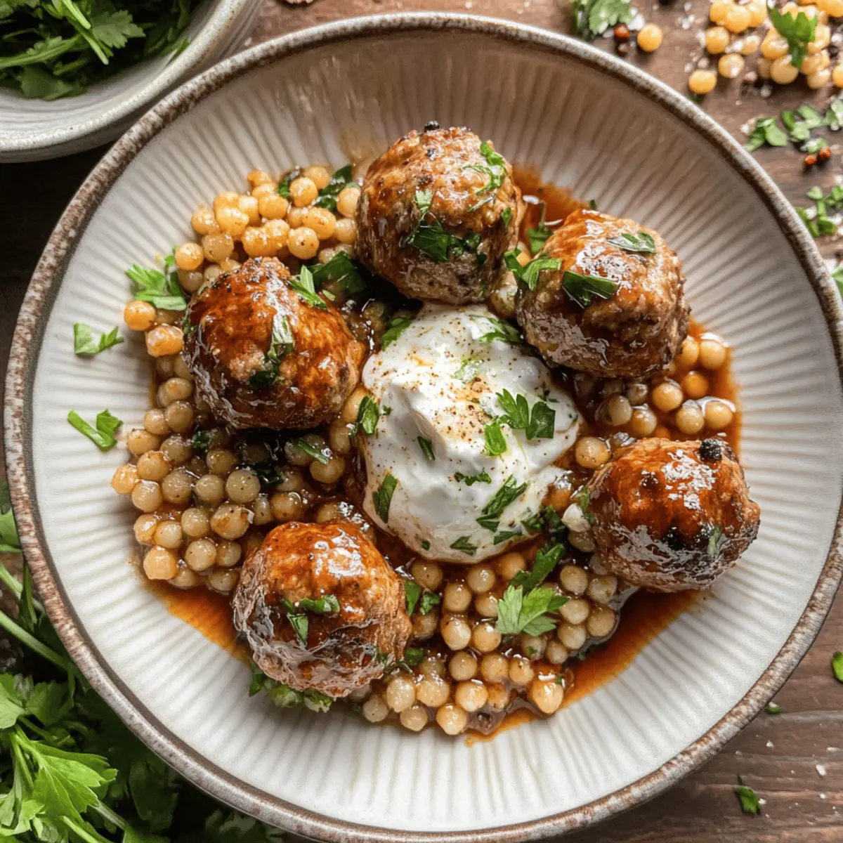 Texture Harmony: The tender, juicy meatballs paired with uniquely chewy fregola and creamy yogurt sauce offer a delightful contrast that’s irresistible.