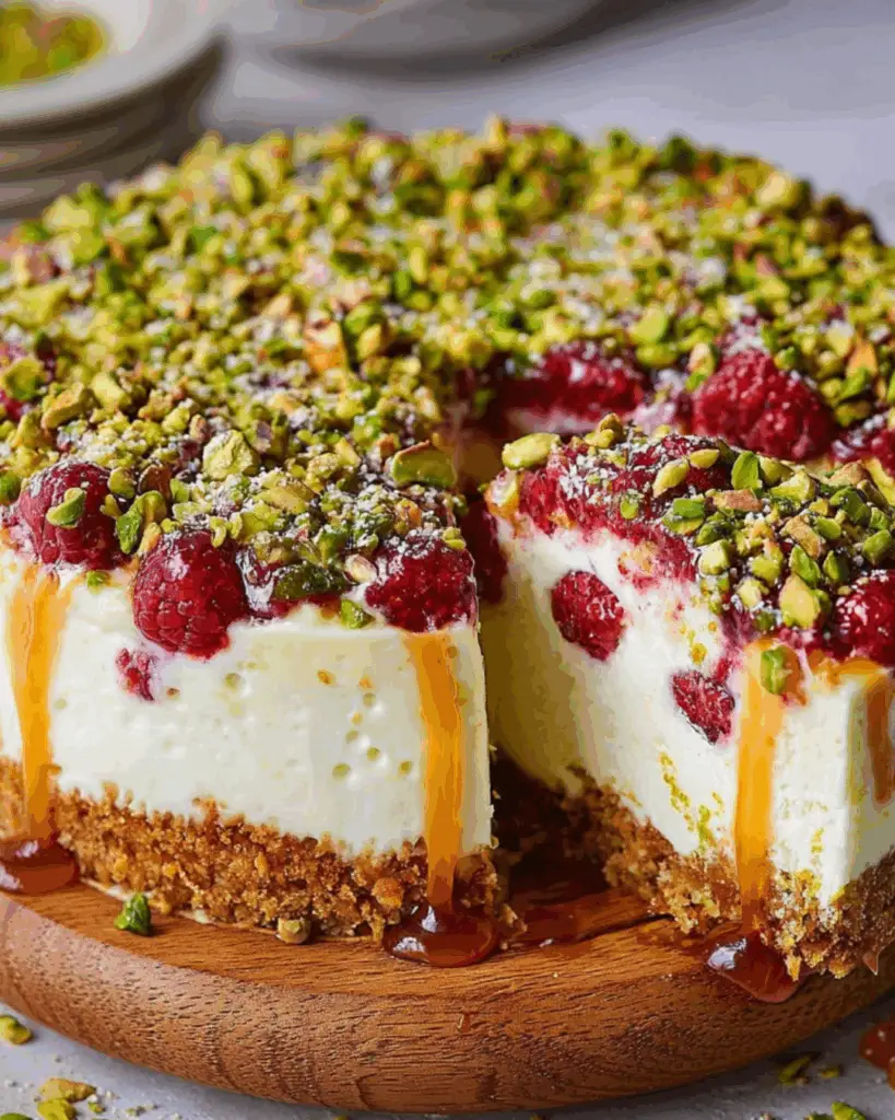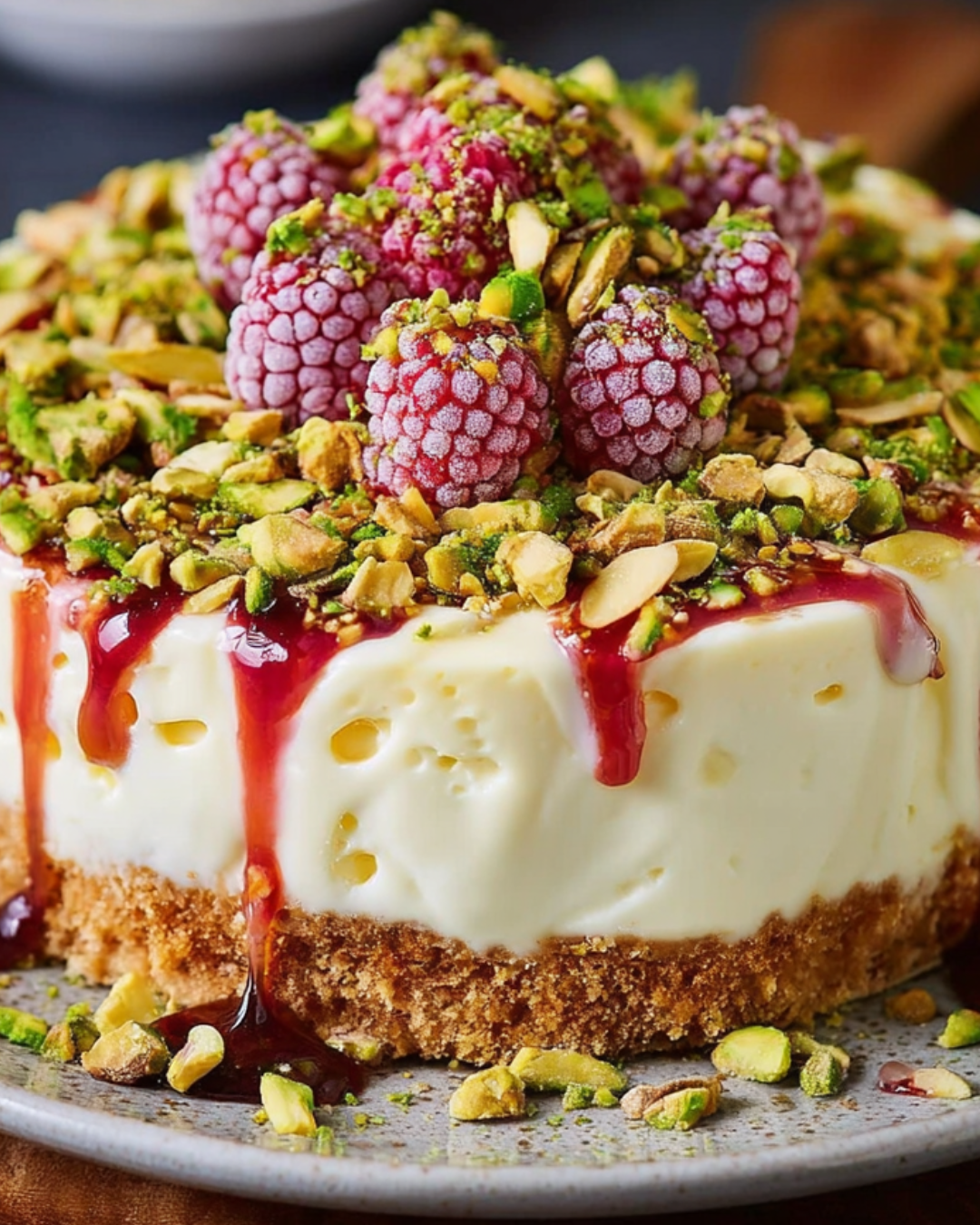 PrintHeavenly Pistachio White Chocolate Cheesecake Recipe Unveiled
