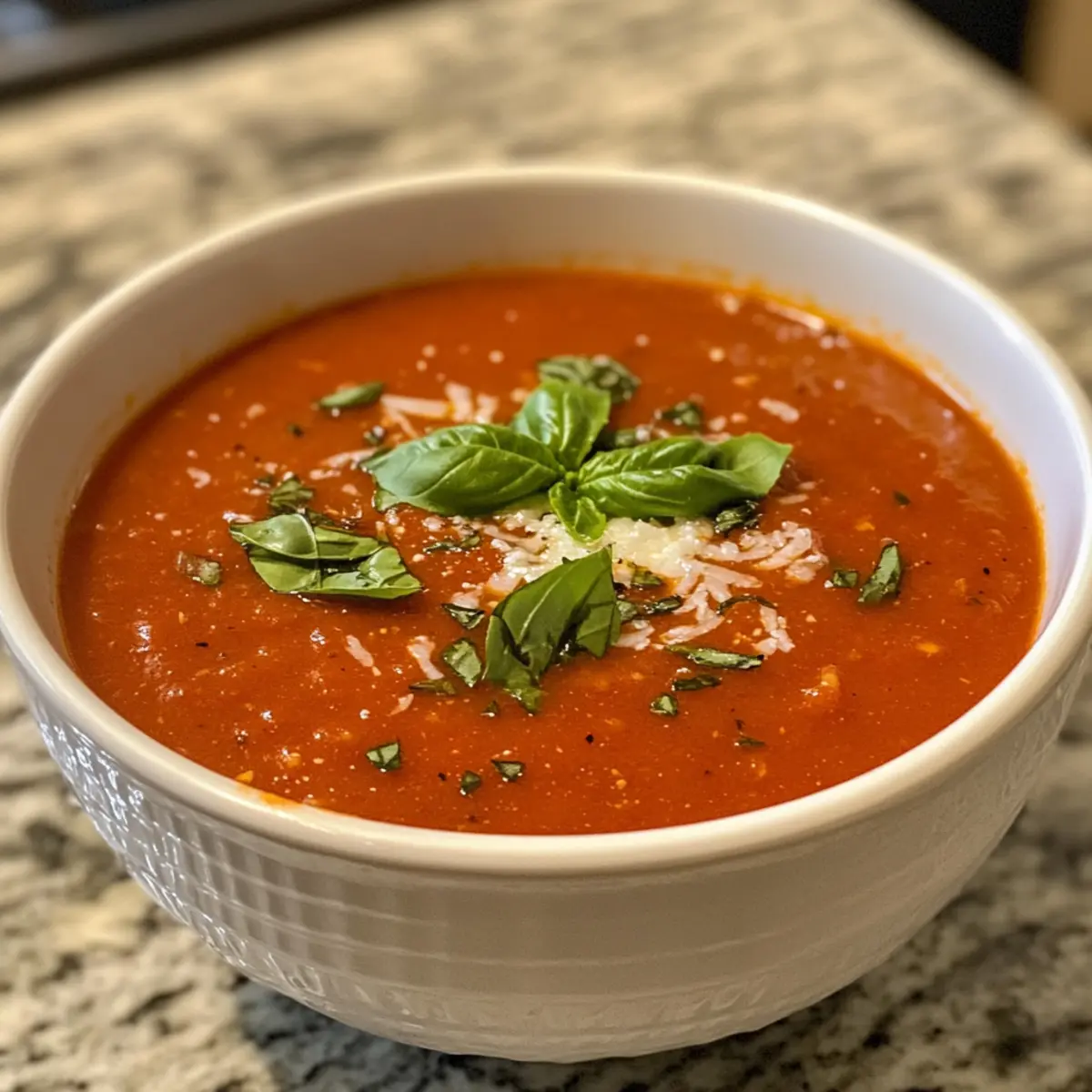 - Ladle soup into bowls and garnish with parmesan cheese and fresh basil.