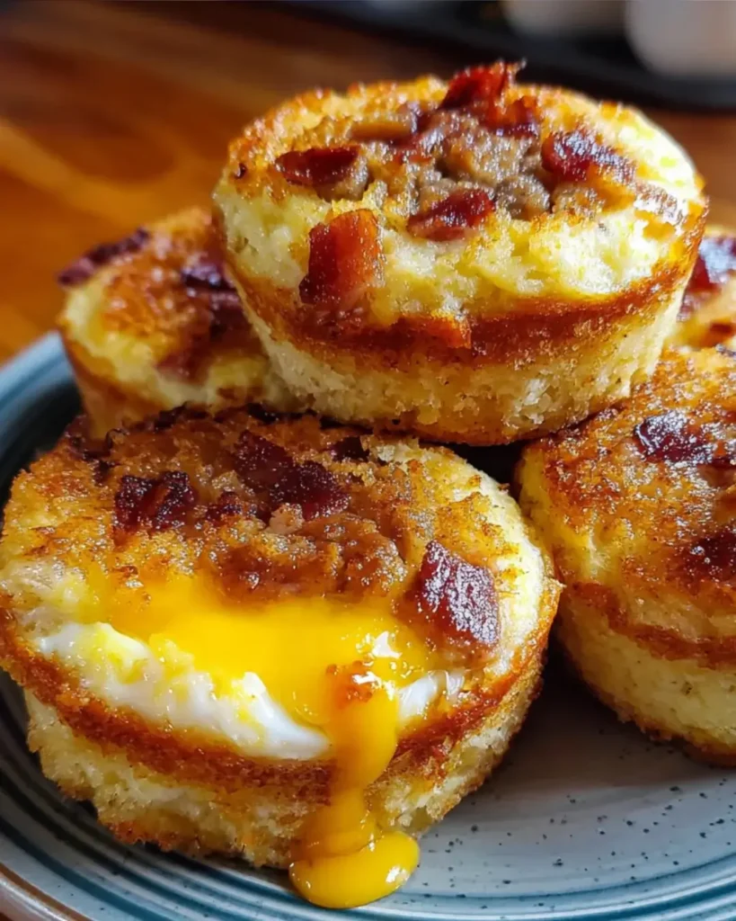Homemade McGriddle Muffins are a delightful breakfast treat that combines fluffy muffins with savory bacon or sausage and melted cheese, all drizzled with maple syrup.
