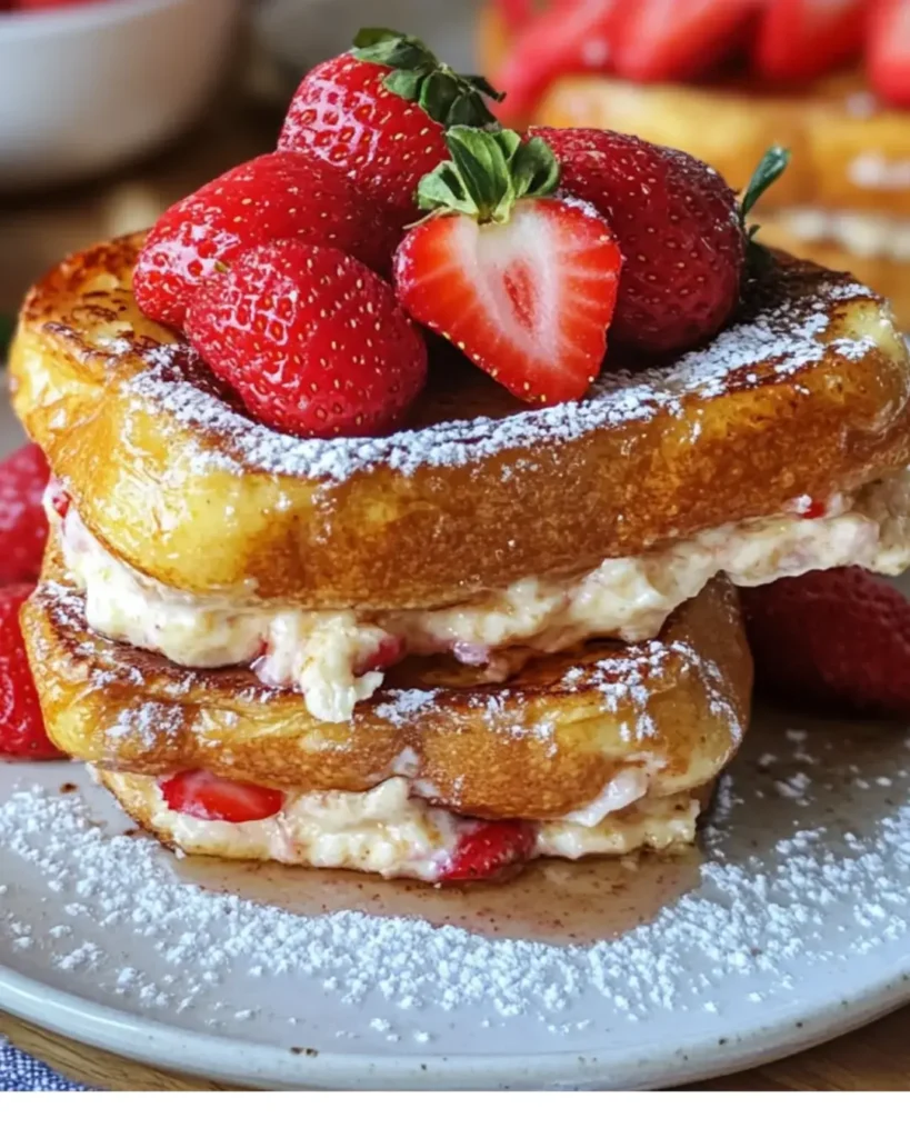 Indulgent Strawberry Cheesecake French Toast is a delicious breakfast treat that combines the flavors of cheesecake and French toast, topped with fresh strawberries and whipped cream.