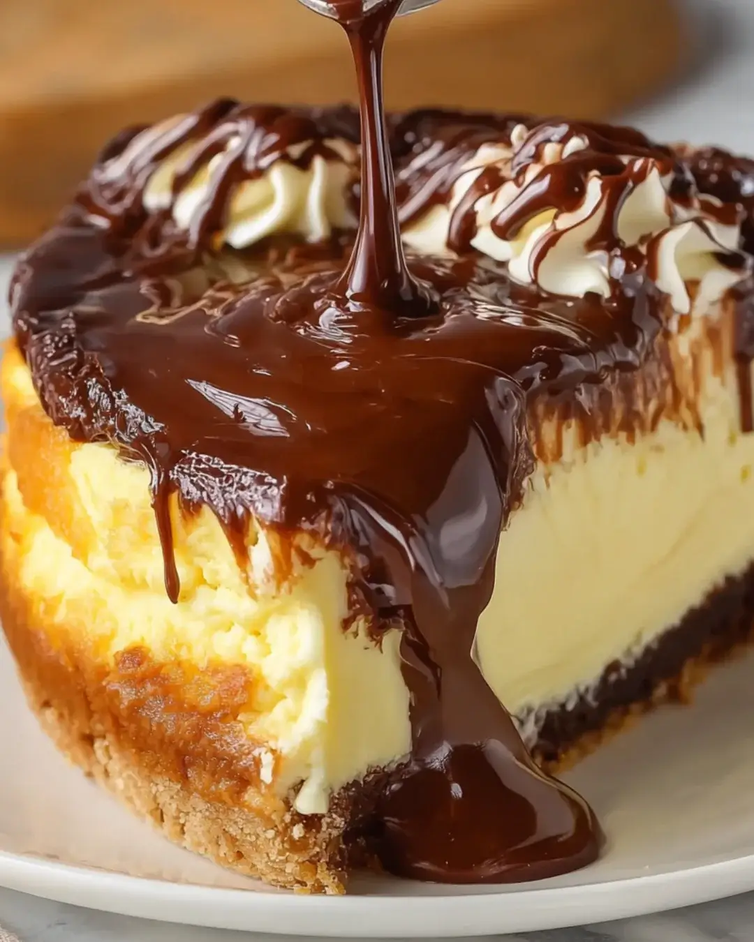 Finally, drizzle the cooled chocolate over the whipped cream topping. Slice your cheesecake and serve it up! Each bite is a delightful combination of flavors that will leave everyone wanting more.