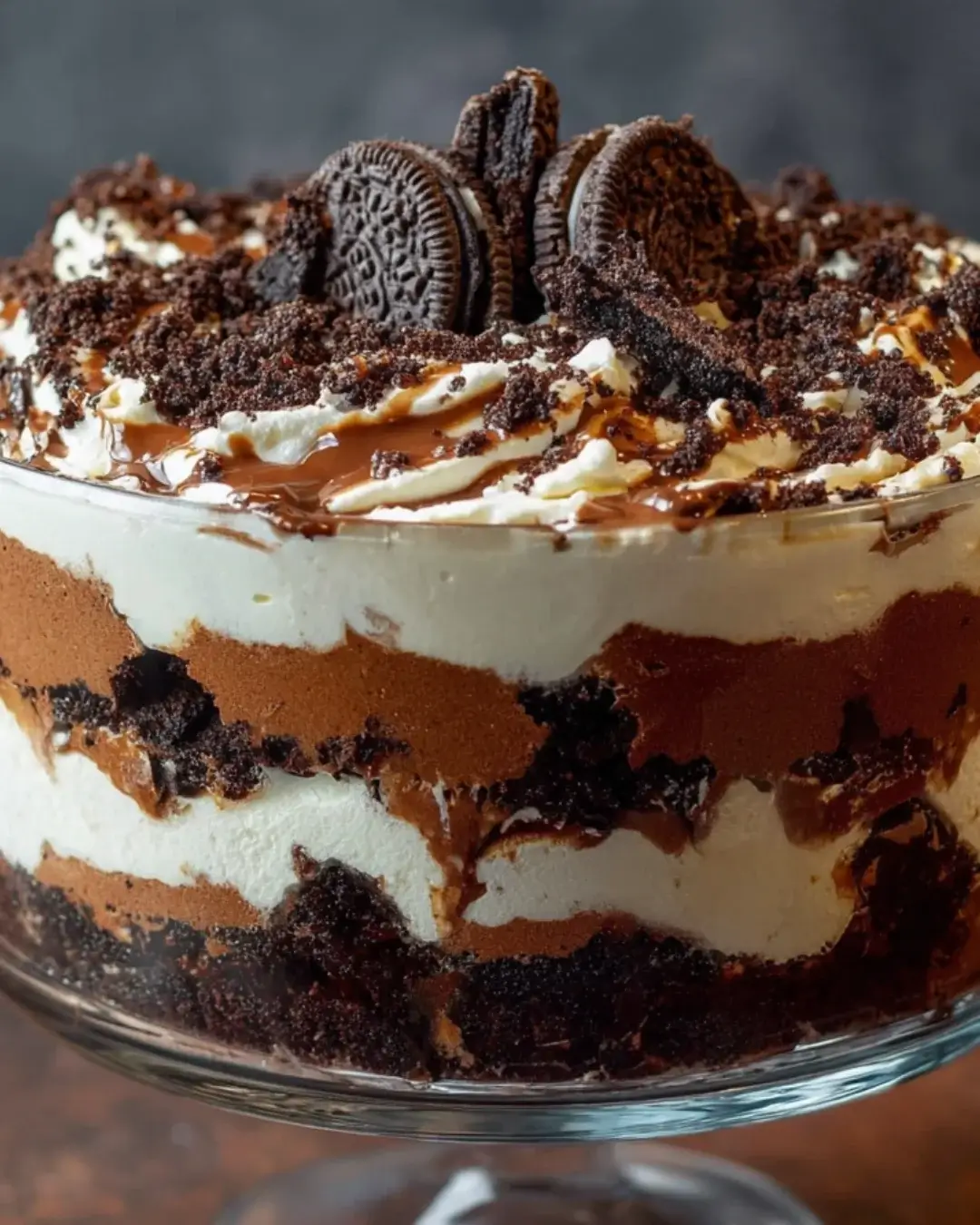 To make your trifle visually stunning, garnish the top with whole Oreo cookies and an extra drizzle of chocolate syrup.