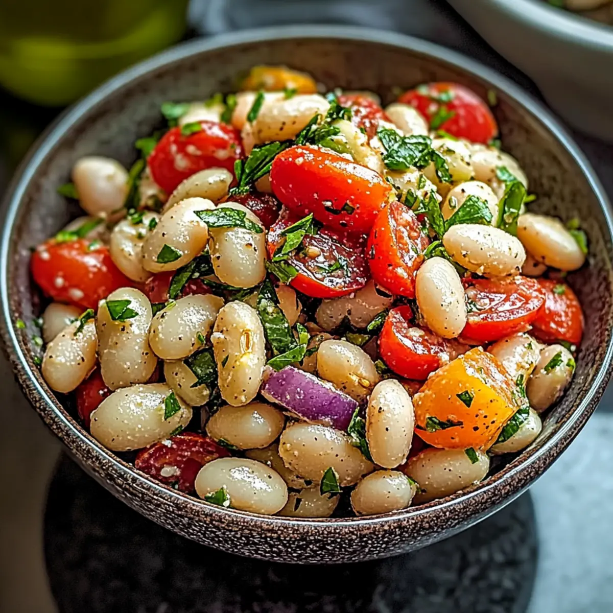 As I tossed ingredients together, a burst of vibrant colors caught my eye—crimson cherry tomatoes, crisp green bell peppers, and creamy white beans creating my Italian White Bean Salad. This dish is not just a feast for the eyes; it’s a refreshing and healthy option that provides both heartiness and simplicity in every bite. Perfect for summer gatherings or a cozy night in, it’s quick to prepare, allowing you to spend less time in the kitchen and more time enjoying delicious food with loved ones. Best of all, this salad is fully customizable—feel free to swap in your favorite beans or fresh herbs to make it truly your own! What unique twist will you add to this Mediterranean delight?