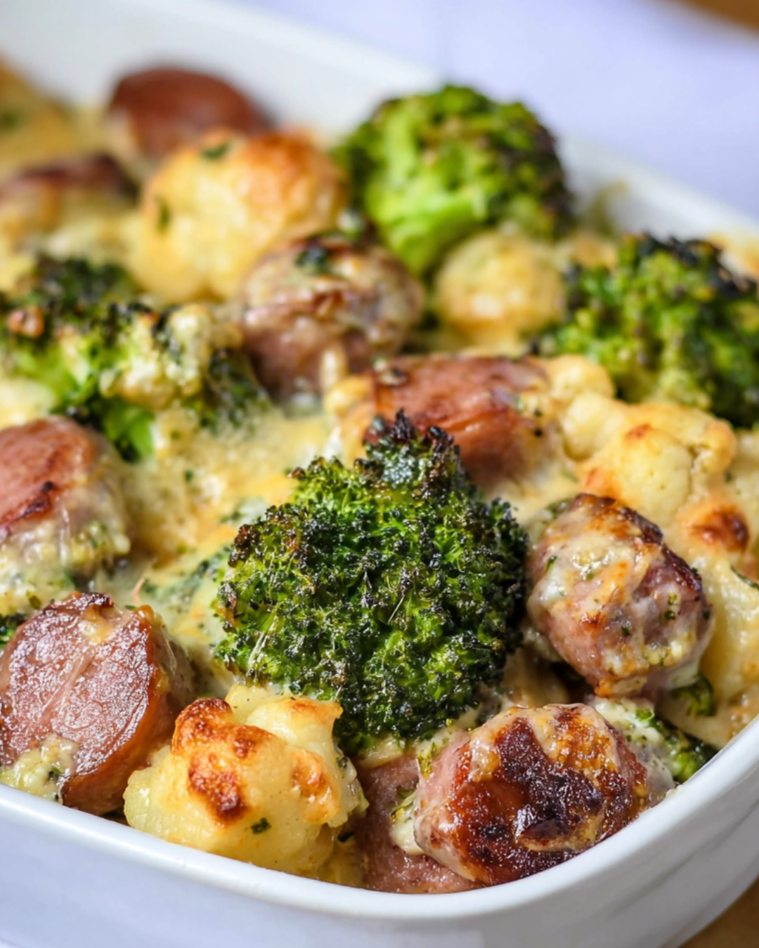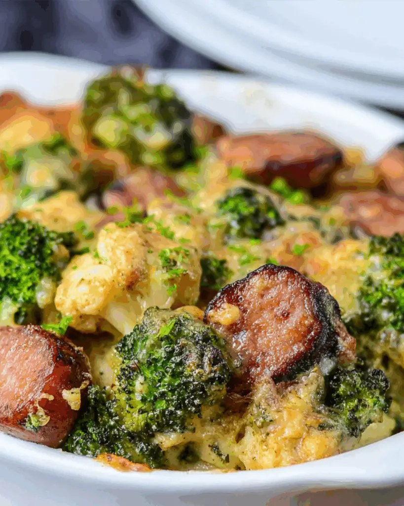 Why You’ll Love This Keto Broccoli and Cauliflower Au Gratin With Sausage