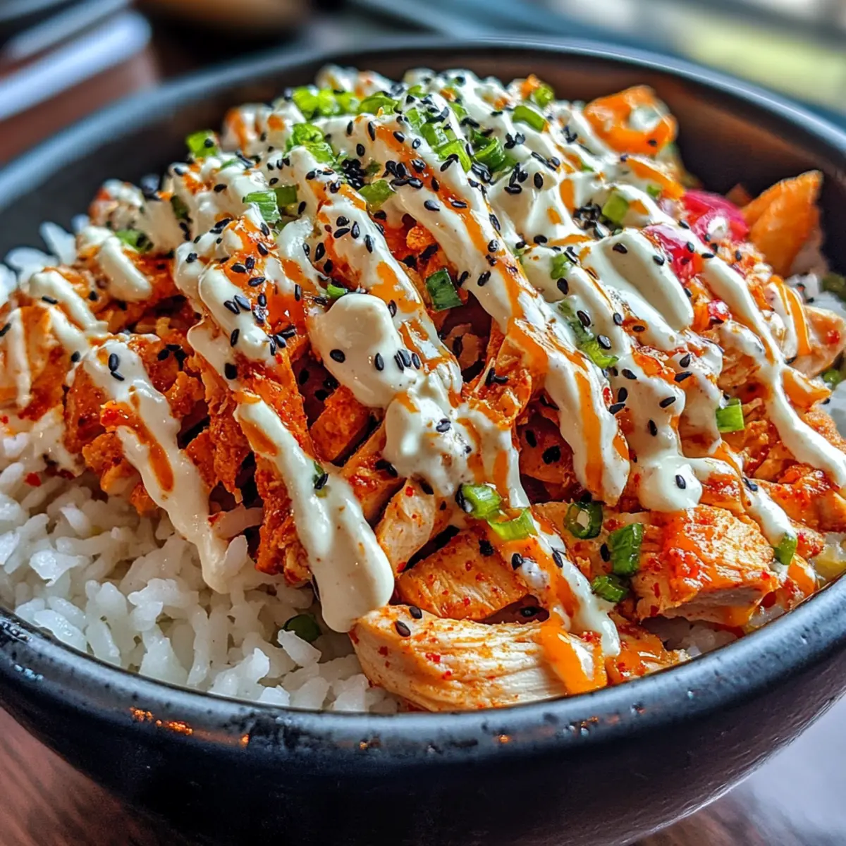 Creamy Variation: Mix cream cheese into the spicy mayo for an extra-rich sauce that melts beautifully over the warm chicken and rice.