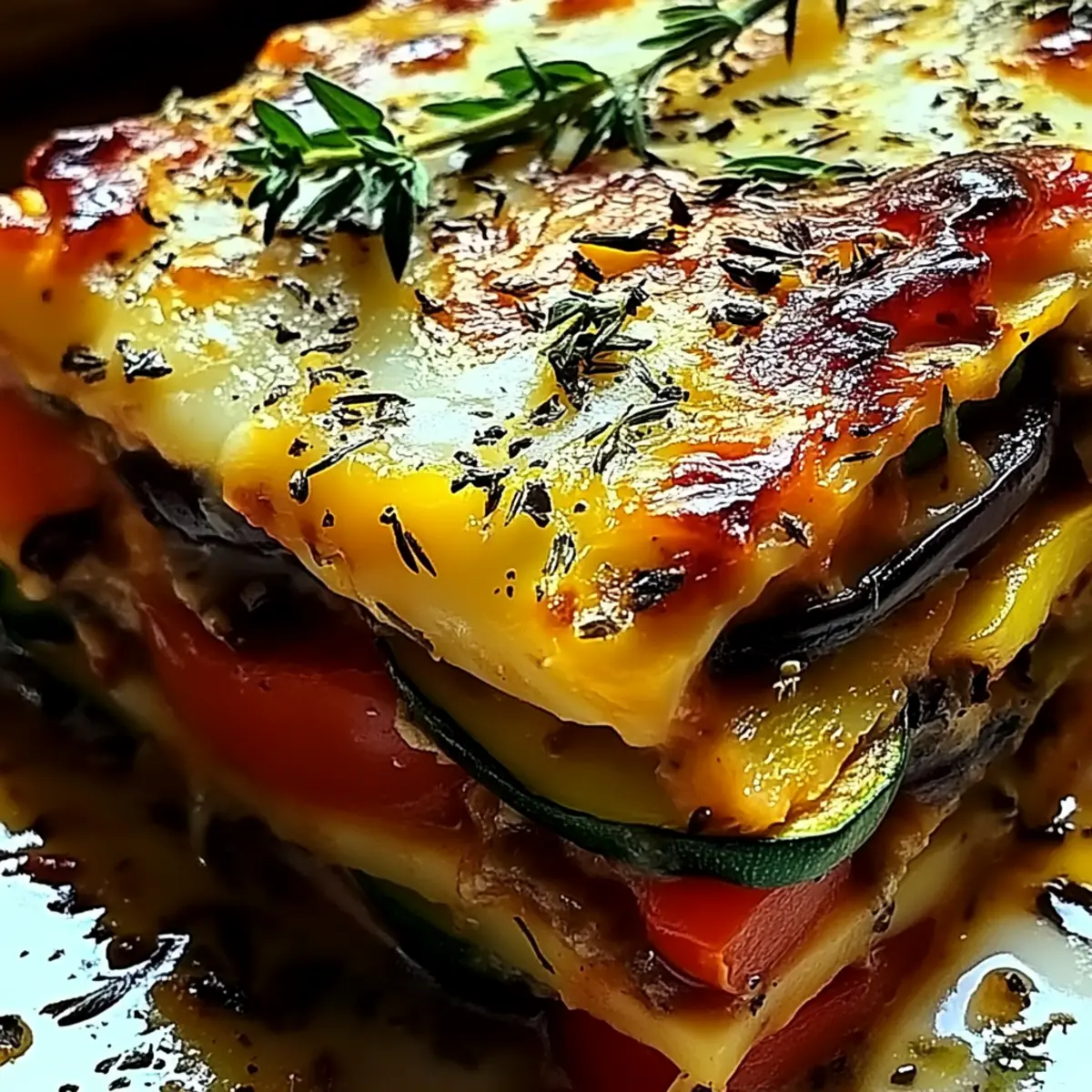 Delicious Layers: Featuring vibrant eggplant, zucchini, and bell peppers, each bite bursts with fresh Mediterranean flavor.