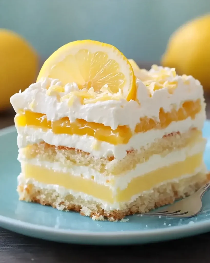 Lemon Lush Cake is a refreshing dessert that combines the zesty flavor of lemon with a light and fluffy whipped cream topping, perfect for any occasion.