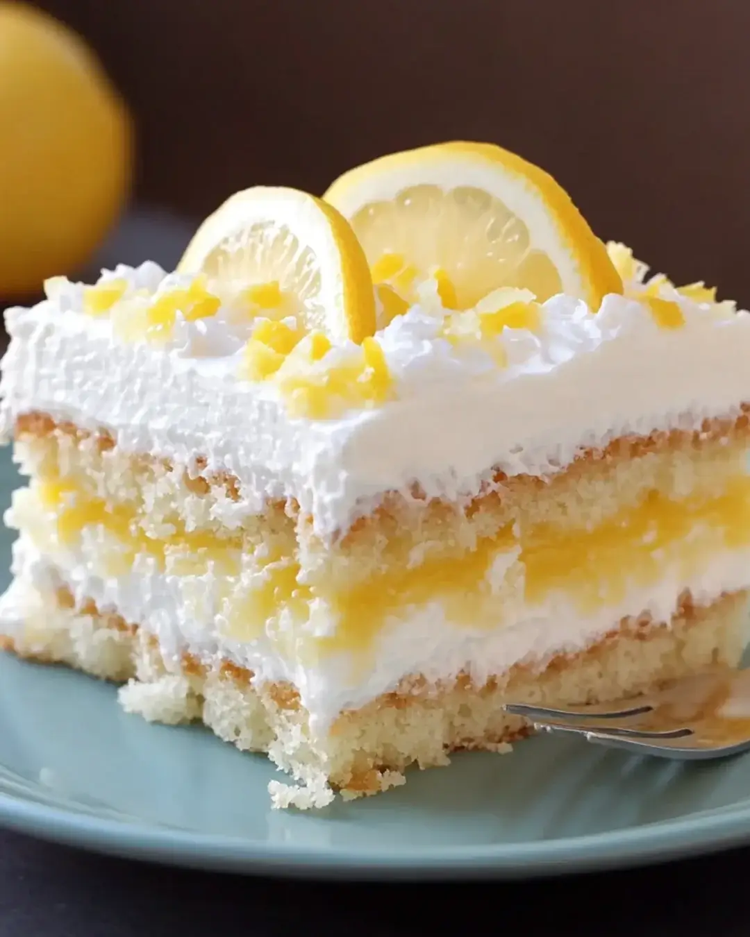 Lemon Lush Cake is a refreshing dessert that combines the zesty flavor of lemon with a light and fluffy whipped cream topping, perfect for any occasion.