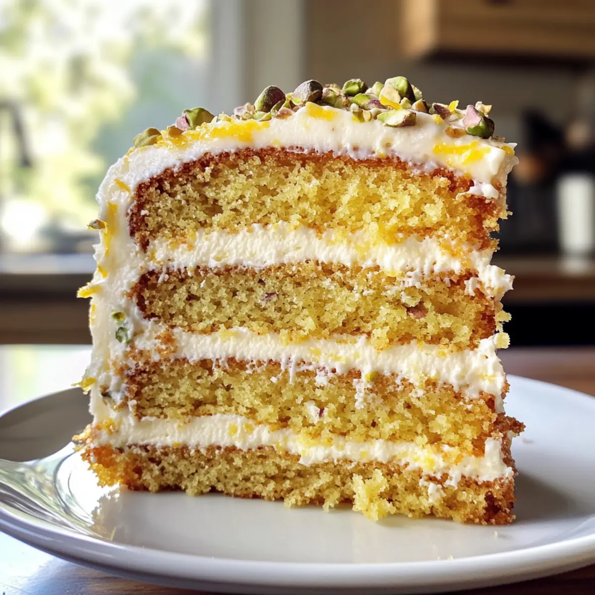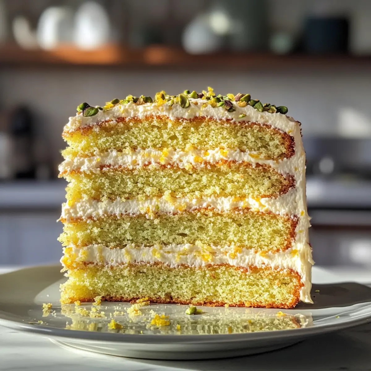 Lemon Pistachio Cake with Mascarpone Frosting Bliss