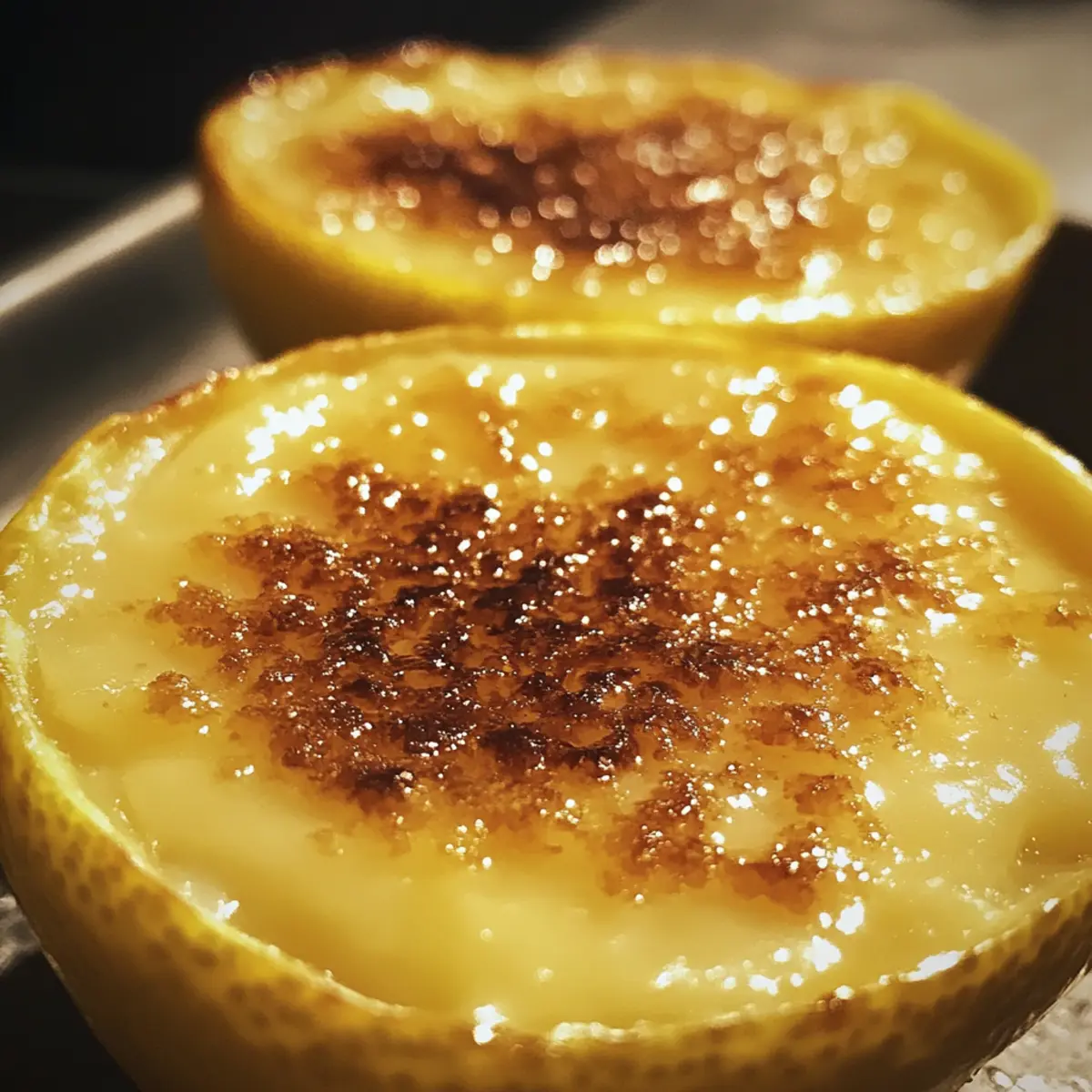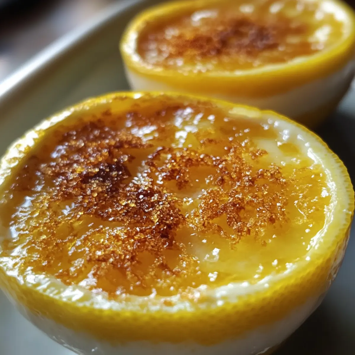 Just before serving your Lemon Posset Brûlée, take each chilled lemon half out of the refrigerator. Sprinkle a thin, even layer of granulated sugar over the top of each set cream. Using a kitchen blowtorch, carefully caramelize the sugar until it turns a beautiful golden-brown. Keep the torch moving to avoid burning, creating a crisp, delightful topping that contrasts with the creamy filling.