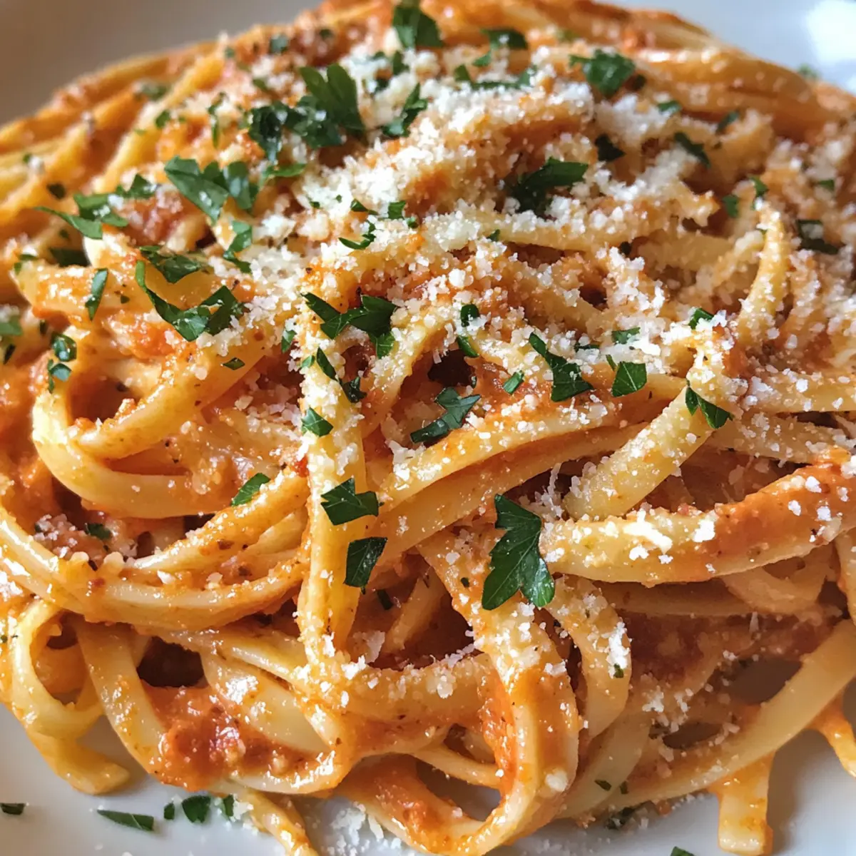 Fold in the cooked linguine and sprinkle the chopped parsley over the mixture. Toss everything together for about 1-2 minutes, ensuring each strand is coated with the rich sauce. This final step transforms your dish into a vibrant and mouthwatering Linguine with Creamy ‘Nduja Tomato Sauce that’s ready to be served.