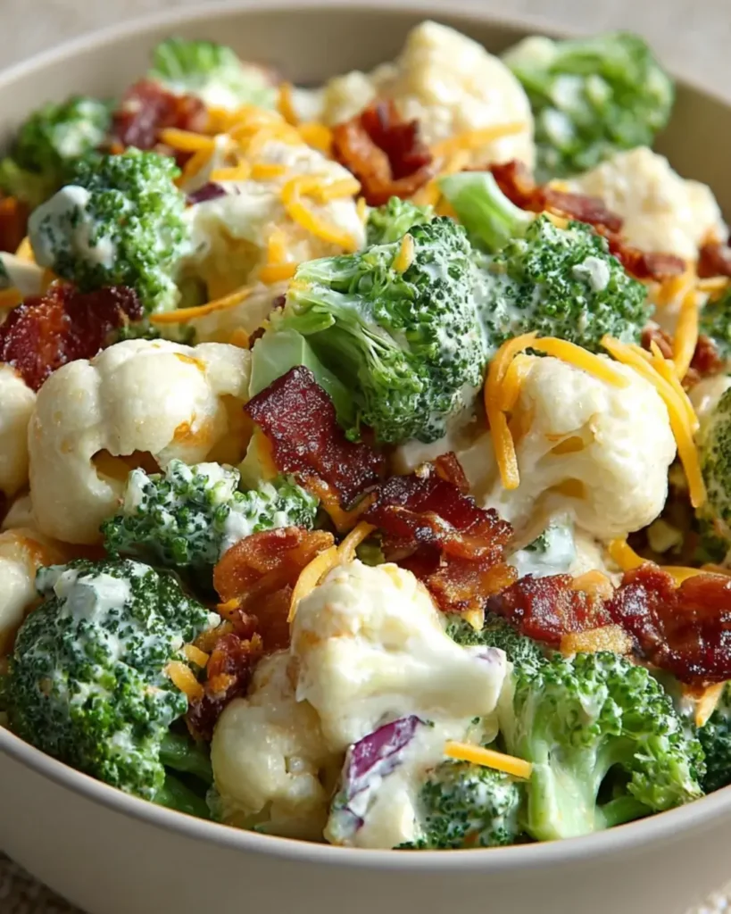This Loaded Broccoli Cauliflower Salad is a game-changer for busy weeknights or weekend gatherings. It comes together in just 15 minutes, making it a breeze to prepare. The combination of fresh veggies, creamy dressing, and crispy bacon creates a flavor explosion that’s hard to resist. Plus, it’s a healthy option that doesn’t skimp on taste, ensuring you can enjoy every bite without the guilt.