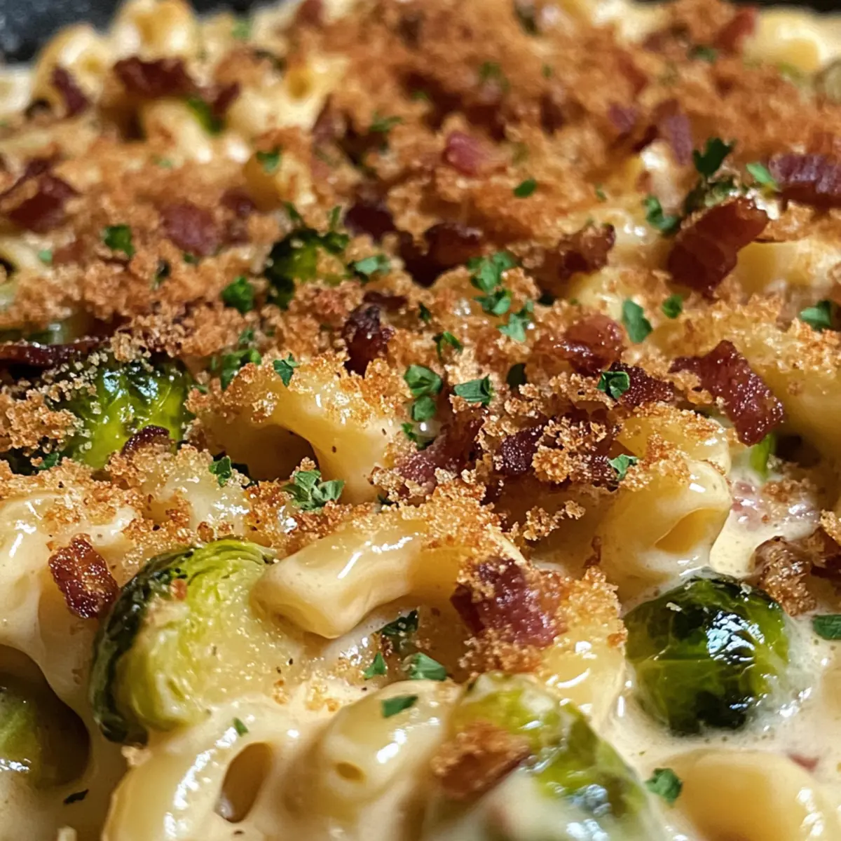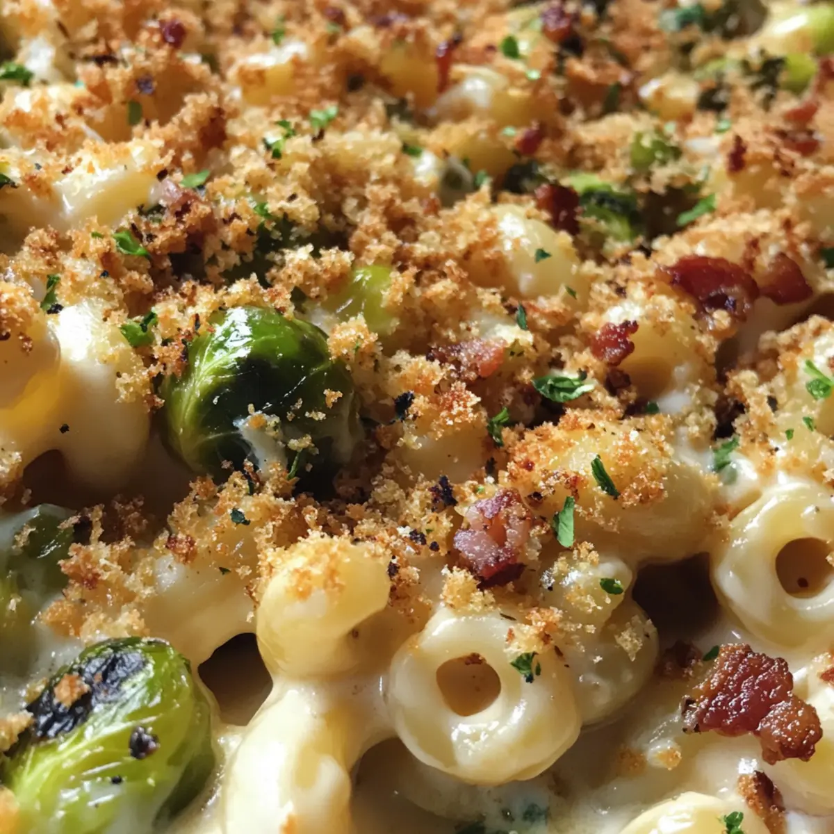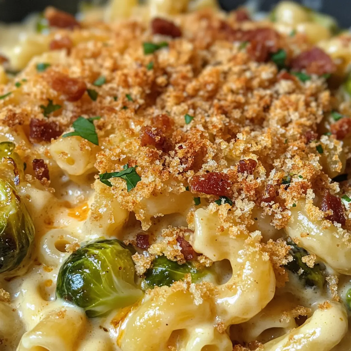 Get ready to transform your mealtime with this irresistible Mac and Cheese with Brussels Sprouts & Bacon Breadcrumbs!