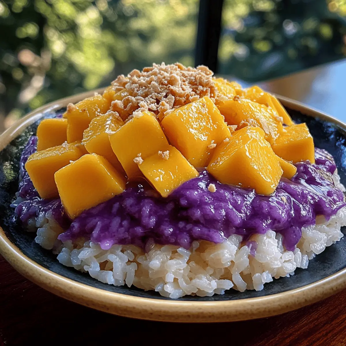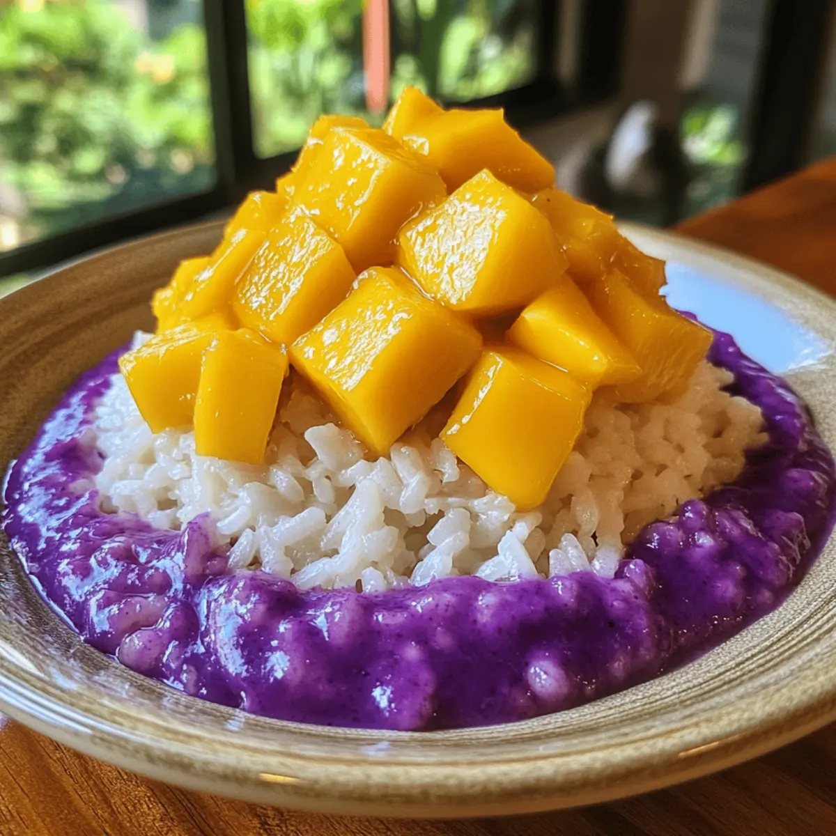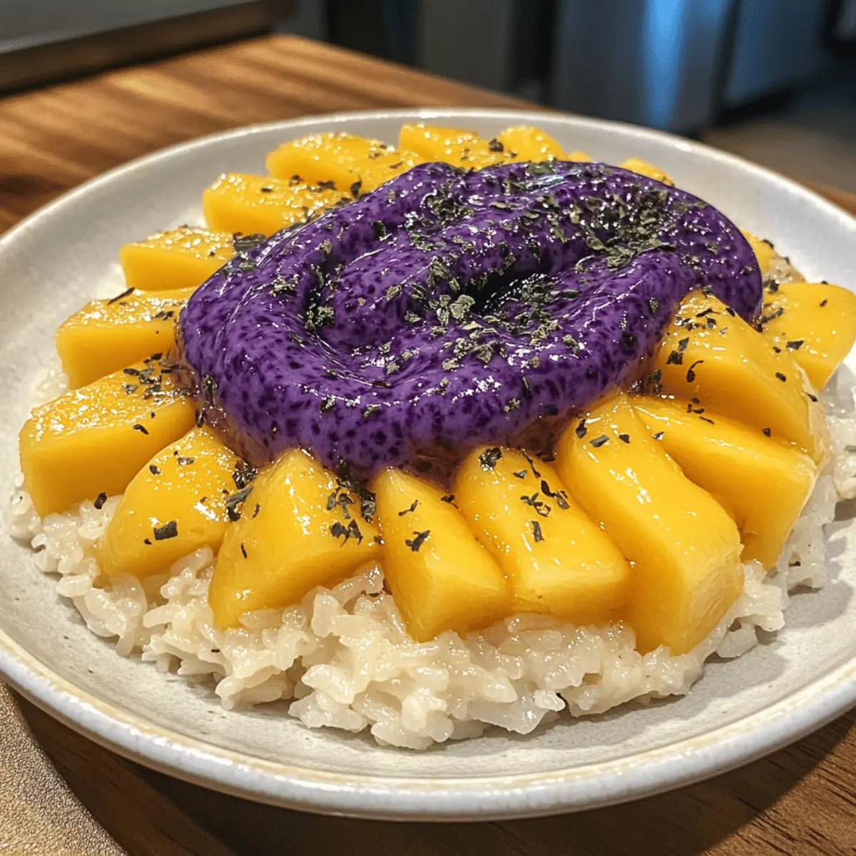 Mango Sticky Rice Bliss: Creamy Coconut and Ube Twist