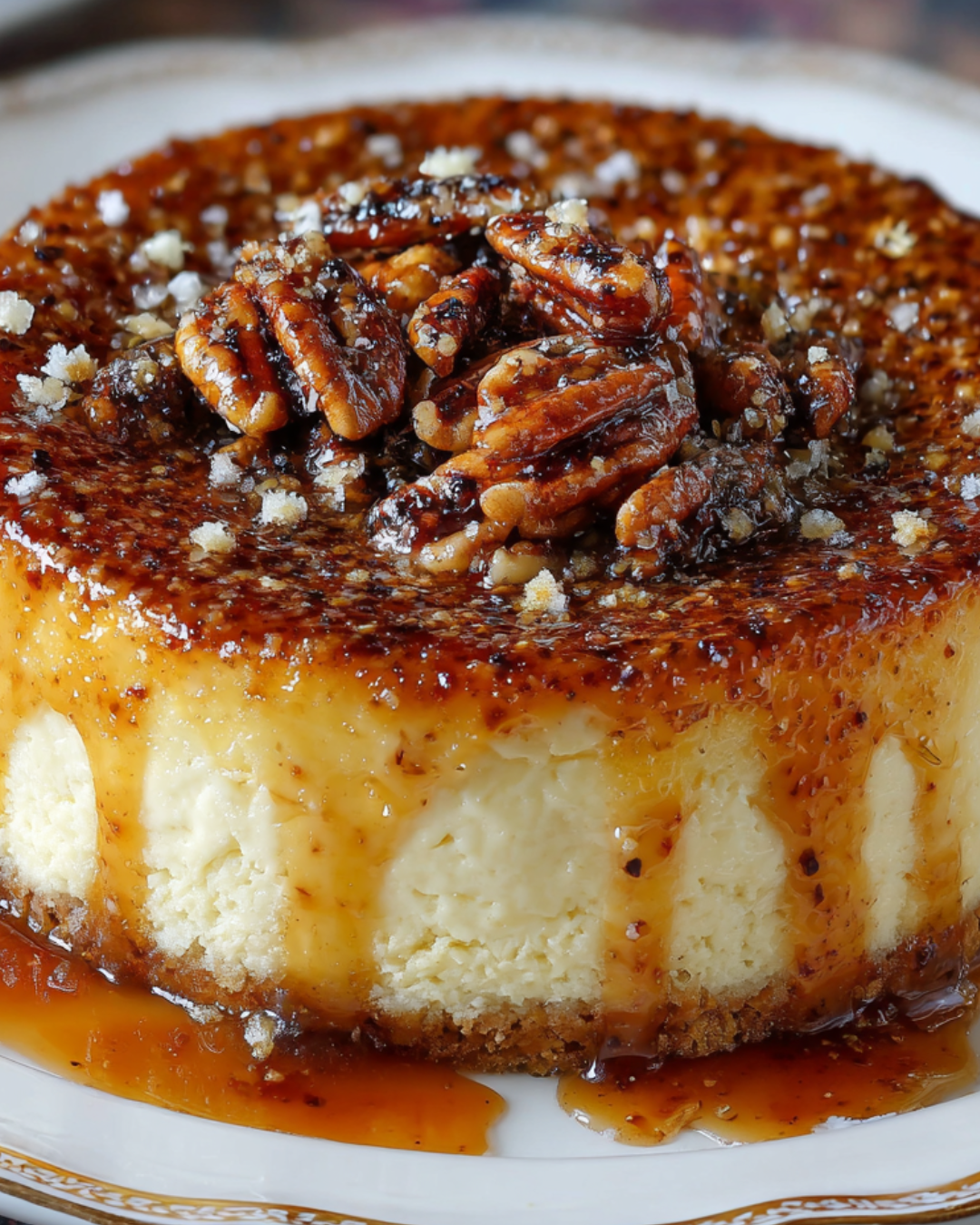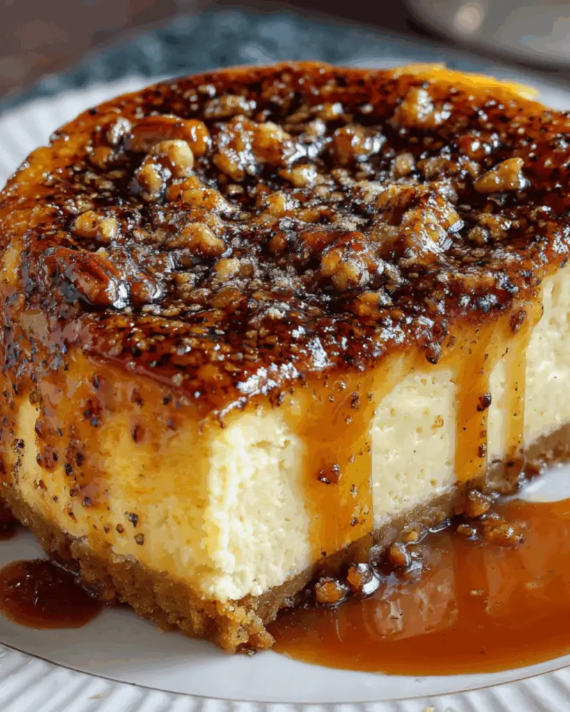 PrintMaple Bourbon Crème Brûlée Cheesecake Recipe Unveiled!