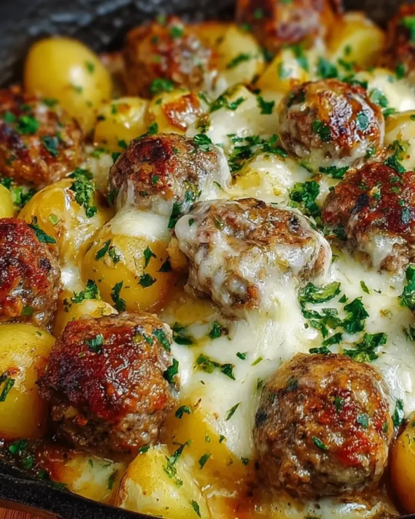This dish is a game-changer for anyone juggling a busy schedule. It’s quick to prepare, taking just 45 minutes from start to finish. The combination of savory meatballs, tender potatoes, and melted cheese creates a flavor explosion that will have everyone asking for seconds. Plus, it’s a one-pan wonder, making cleanup a breeze. Trust me, this recipe will become your go-to for hearty, satisfying meals!