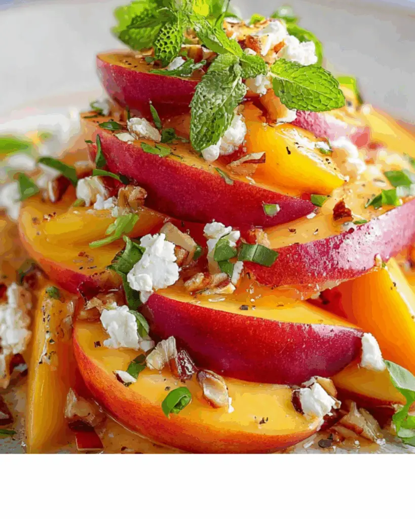 A refreshing and delightful salad featuring ripe peaches, feta cheese, and a mix of nuts, perfect for a side dish or dessert.