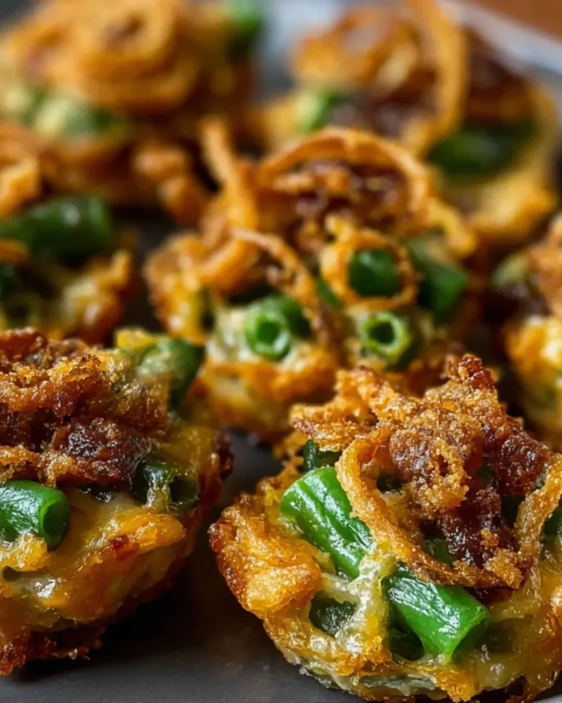 Mini Green Bean Casserole Bites are a delightful appetizer perfect for parties, combining fresh green beans with creamy mushroom soup and topped with crispy fried onions.