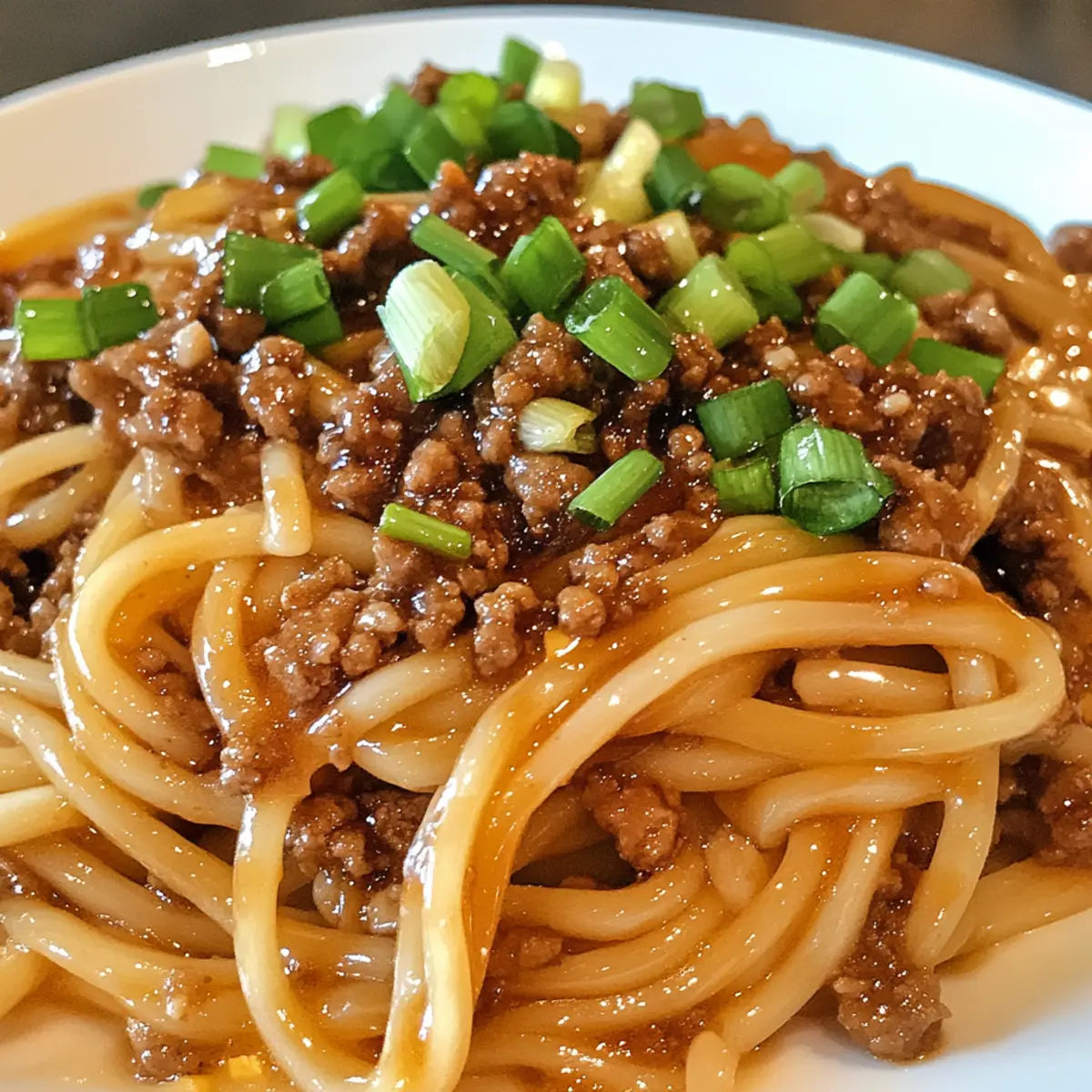 Finally, remove the skillet from heat and garnish the dish with the sliced green onions. Serve the Mongolian Ground Beef Noodles hot, offering a comforting meal that captures both richness and depth of flavor, perfect for any weeknight supper.