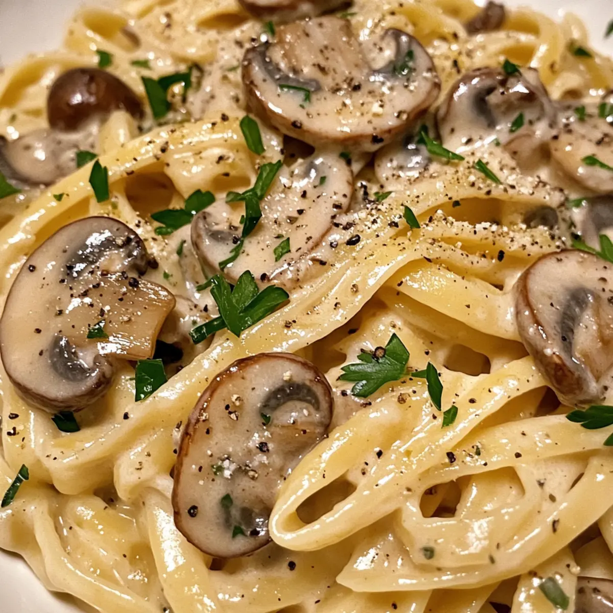 Finally, toss freshly cooked fettuccine (about 12 ounces) into the skillet, ensuring that the pasta is fully coated with the creamy mushroom sauce. Stir everything together for 1-2 minutes, allowing the flavors to meld beautifully. Your delicious Mushroom Cream Sauce Pasta is now ready to serve!