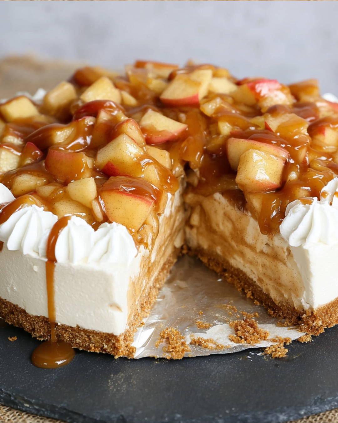 With its creamy texture and sweet apple topping, it’s a crowd-pleaser that satisfies both cheesecake and pie cravings. Perfect for gatherings or a cozy night in, this dessert is sure to impress!