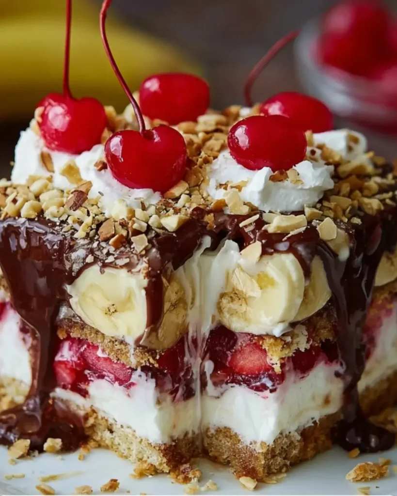 A delightful and easy-to-make No Bake Banana Split Cake perfect for summer gatherings.