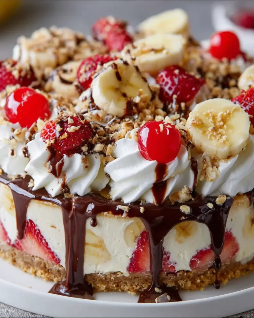 PrintNo-Bake Banana Split Cheesecake: A Delightful Treat!