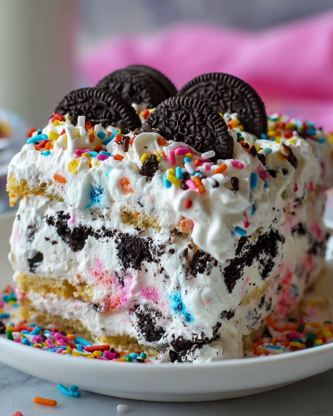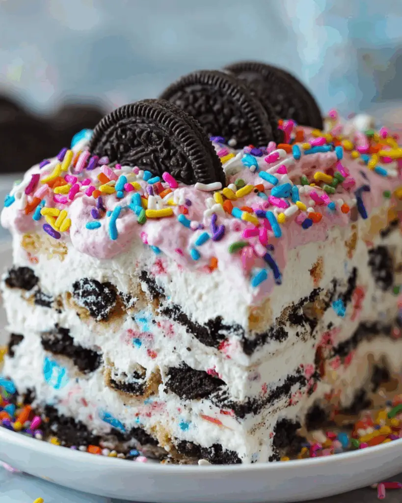 PrintNo-Bake Funfetti Oreo Icebox Cake: Delight Every Bite!