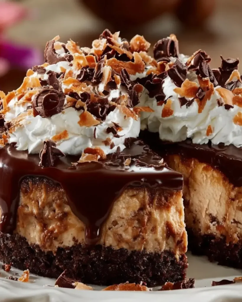 A delicious and easy-to-make No-Bake German Chocolate Cheesecake that combines the rich flavors of chocolate, coconut, and pecans.